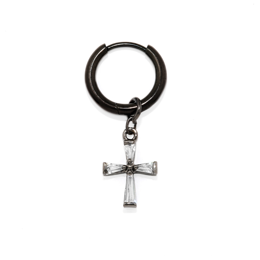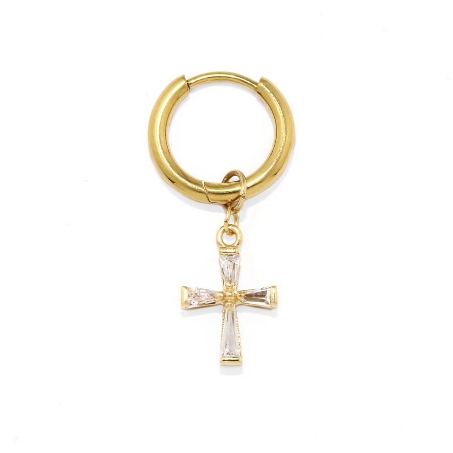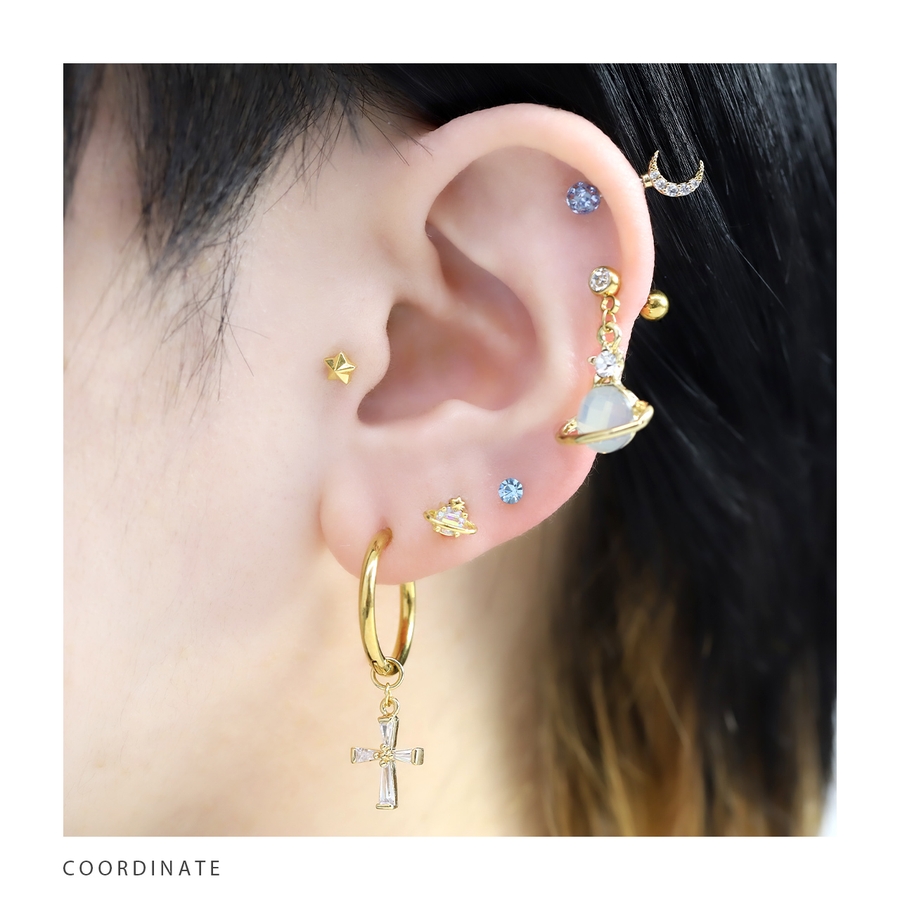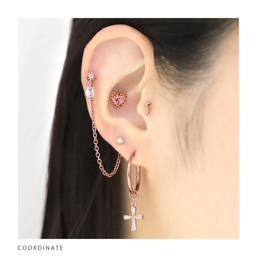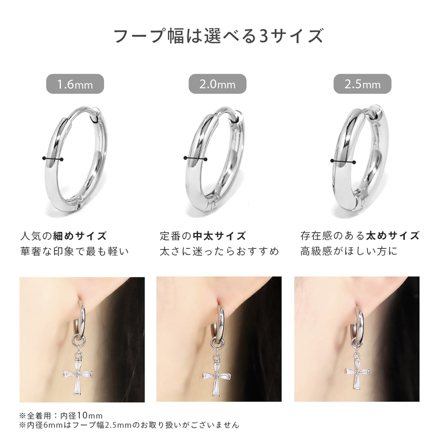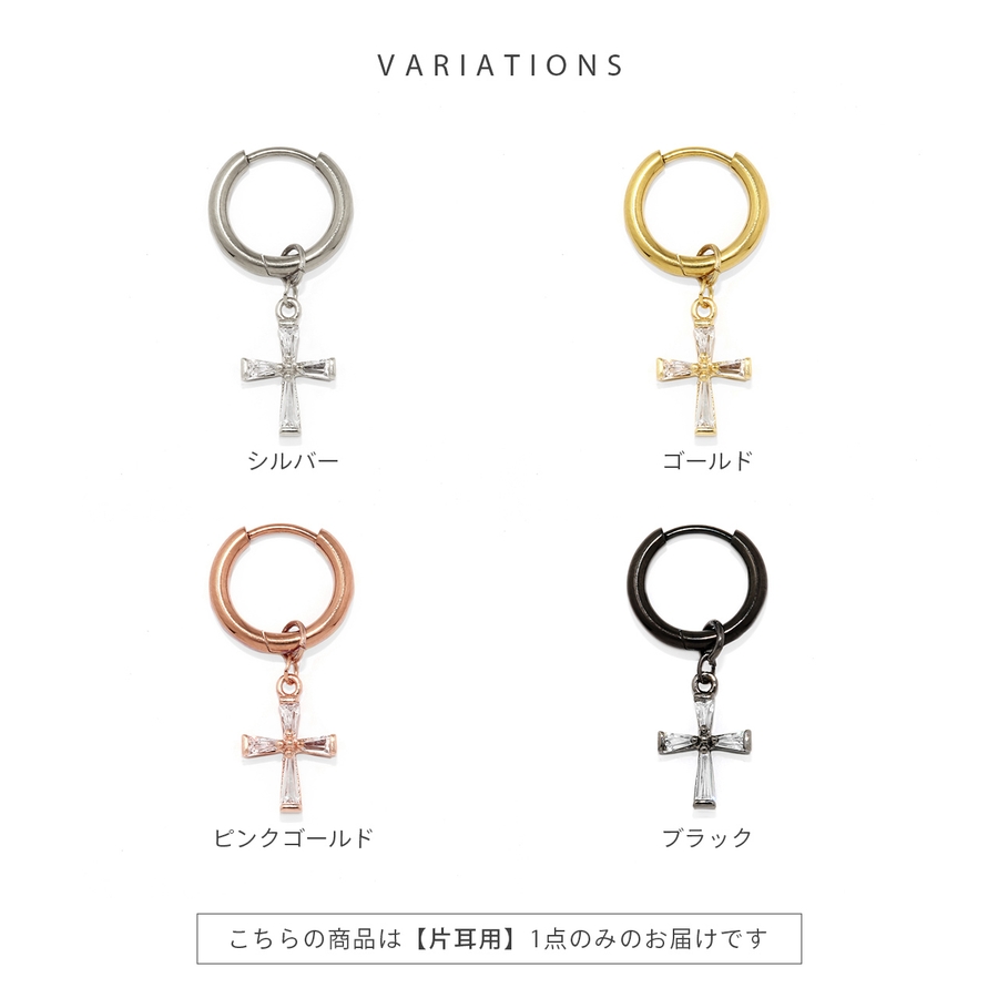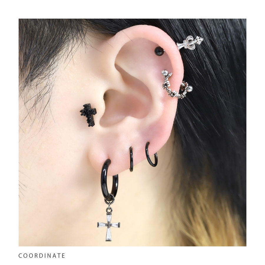 ステンレスピアス フープクロス十字架チャームセットジュエルキュービックジルコニア…