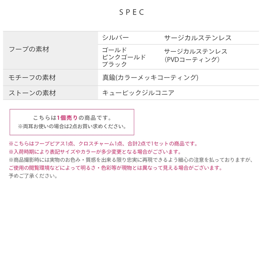 ゴールド ピンクゴールド ブラック:サージカルステンレス(PVDコーティング)