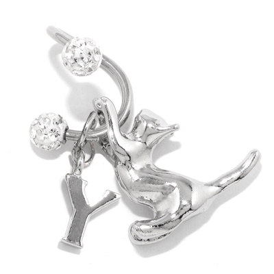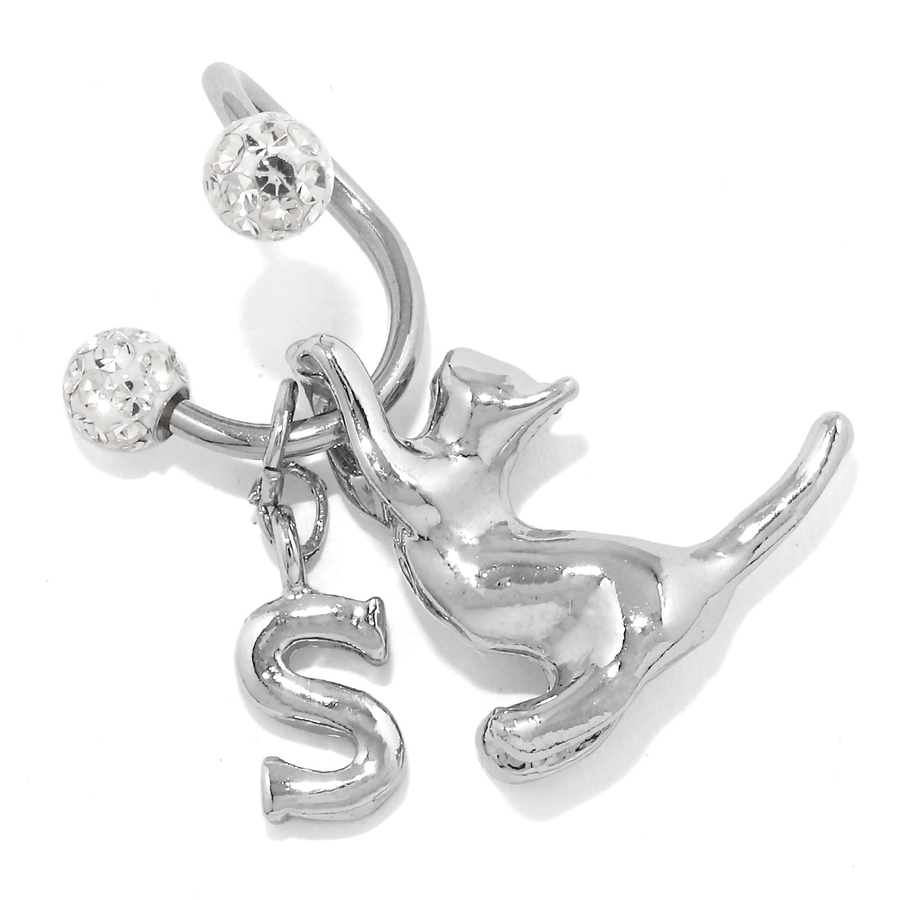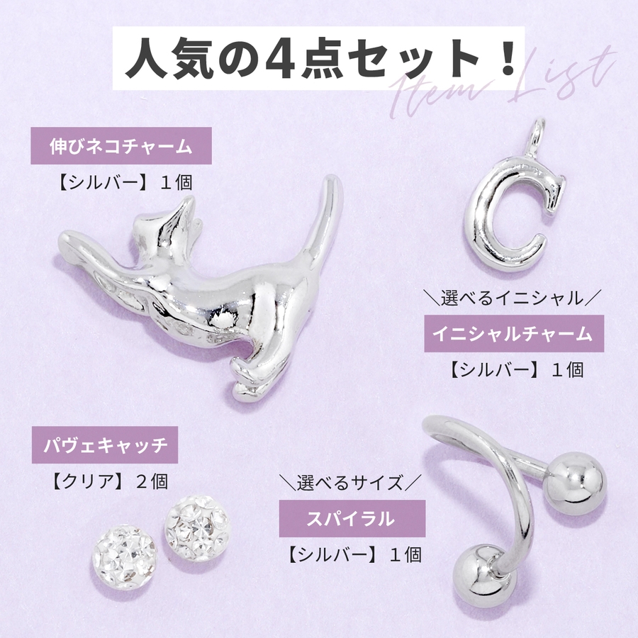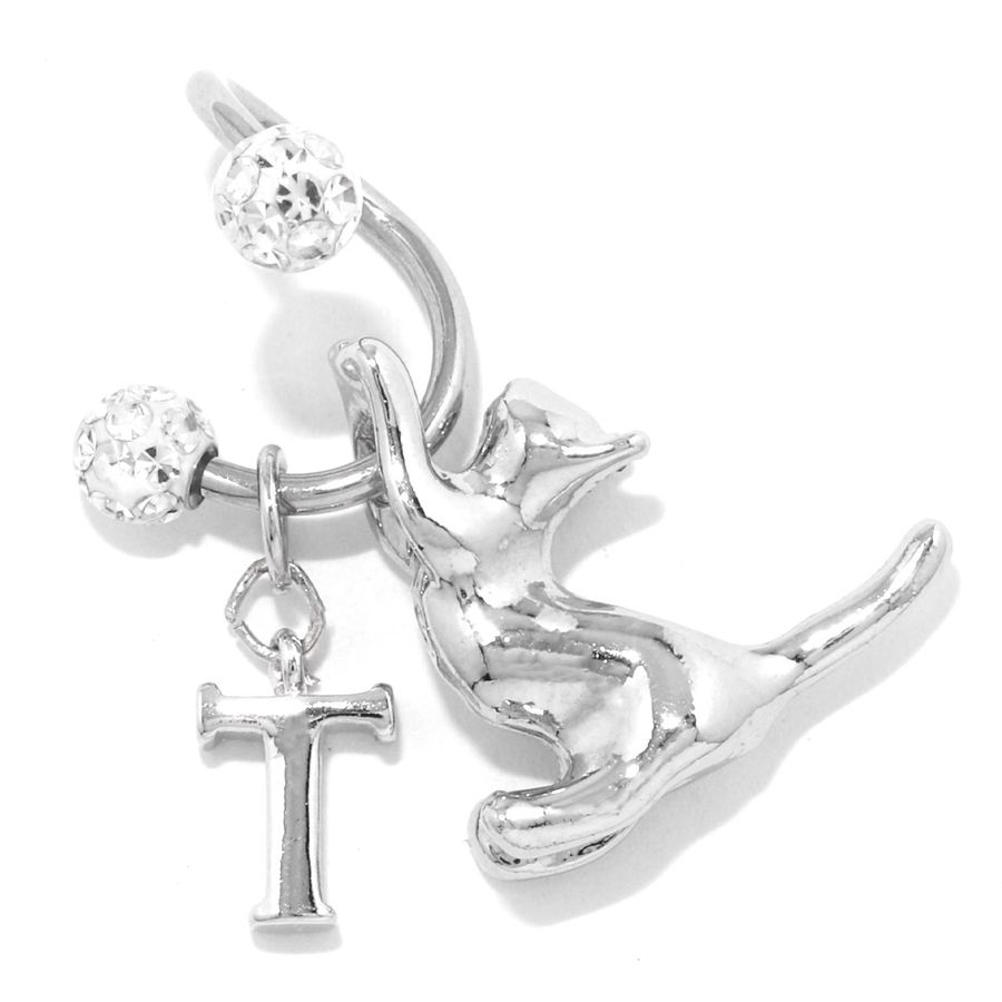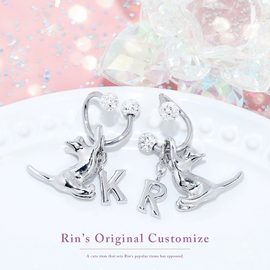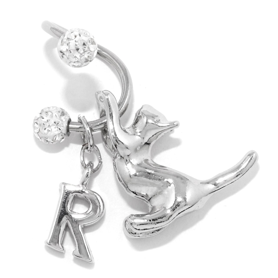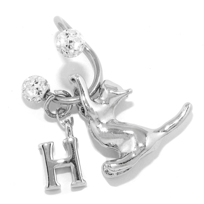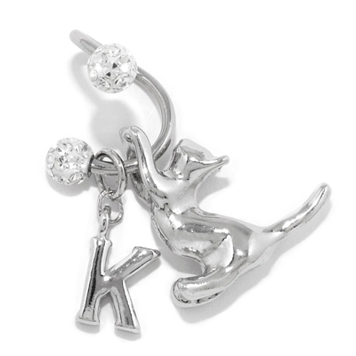 軟骨ピアス スパイラルバーベルかわいい猫英字チャーム 片耳用ボディピアス