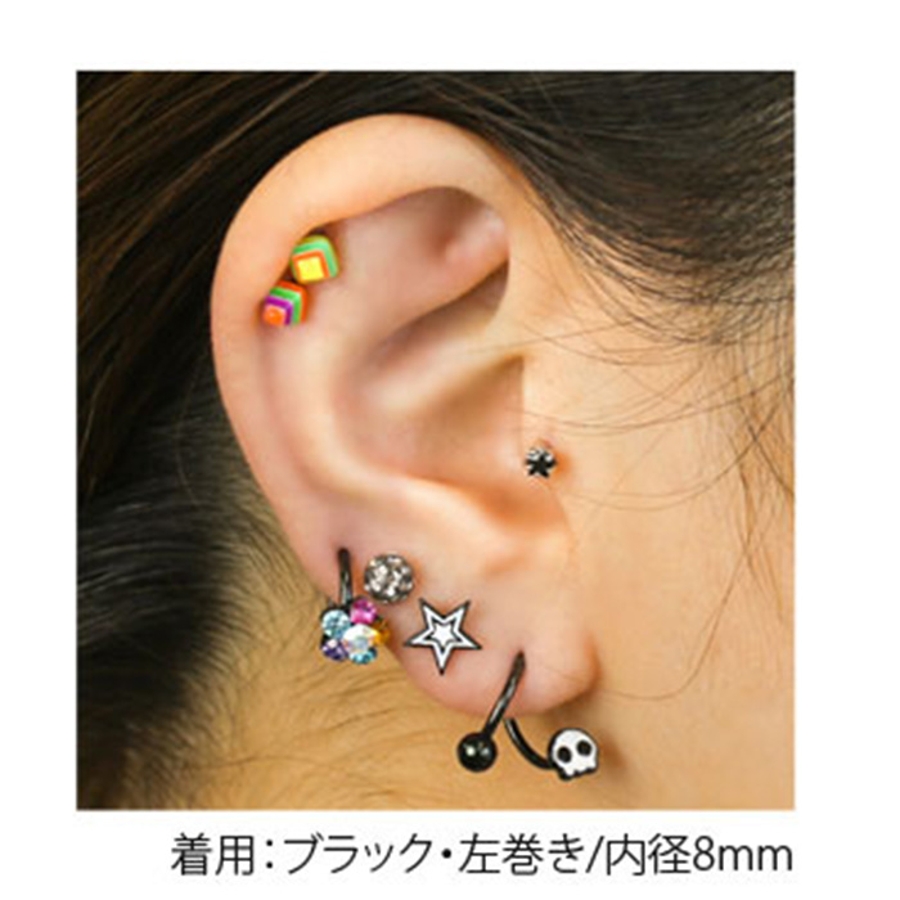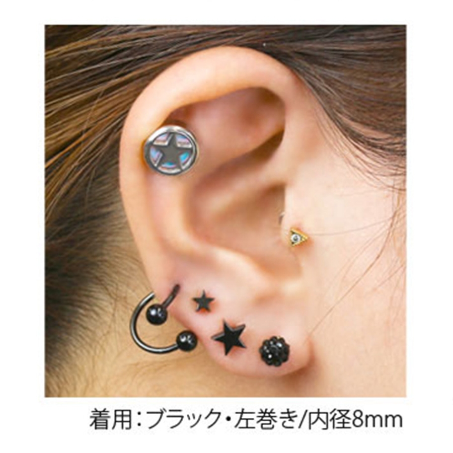 サイズも丁度よく、手持ちのコーンキャッチも付けられました。さん (30代 / 女性 )購入アイテム:ゲージ/カラー/巻き 14G・ブラック・左巻き内径/ボールサイズ 8mm・4mm