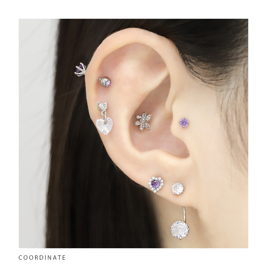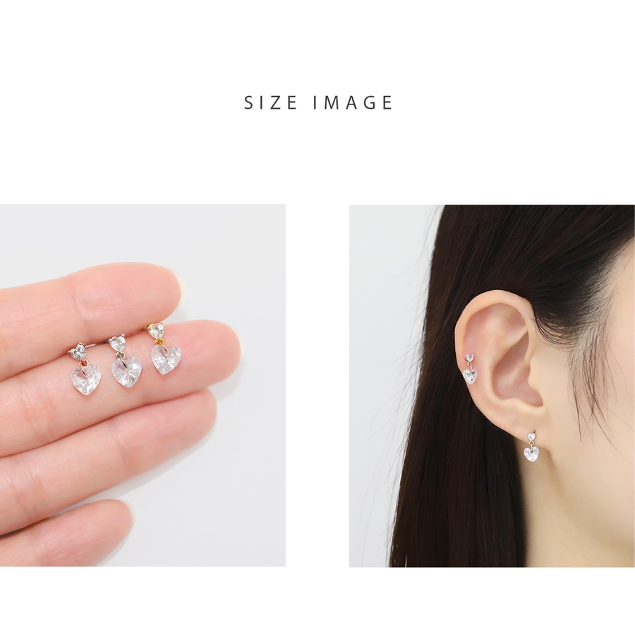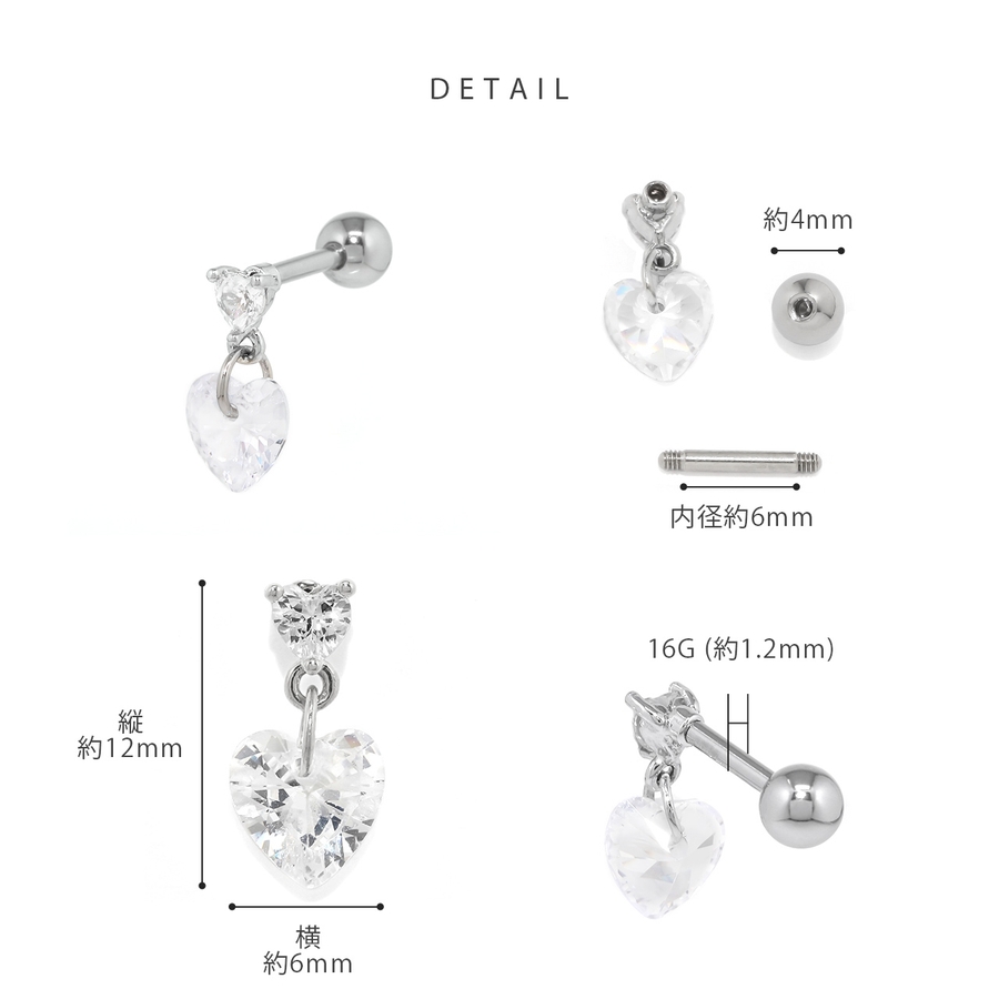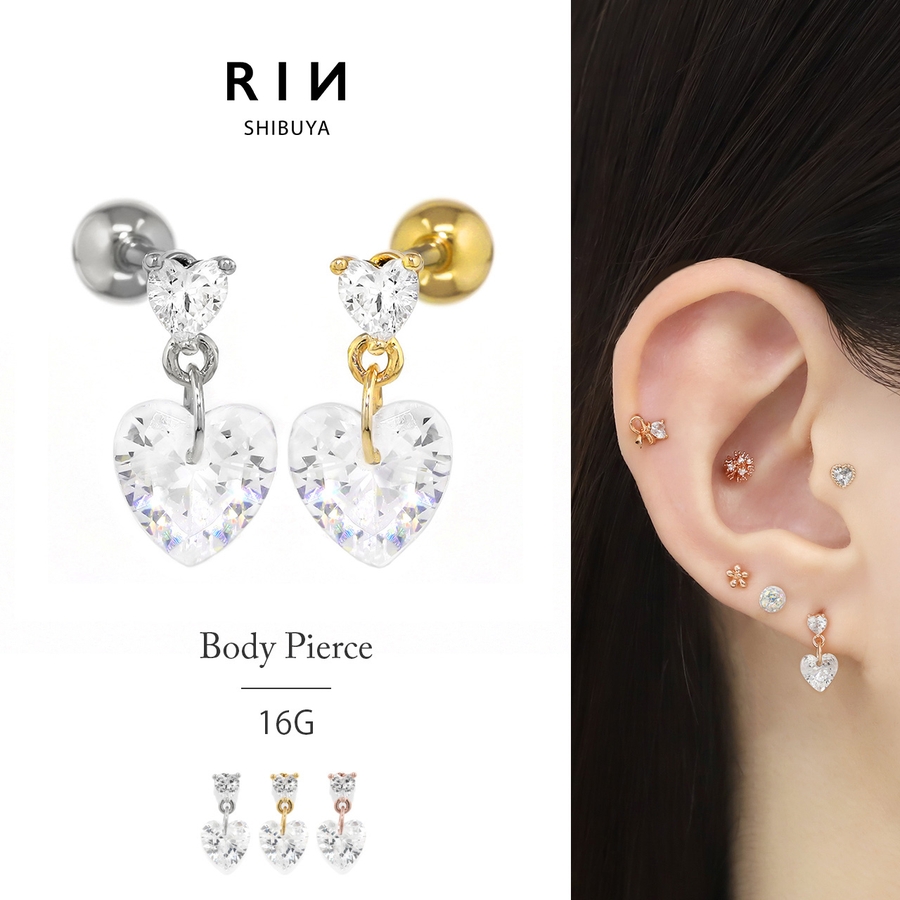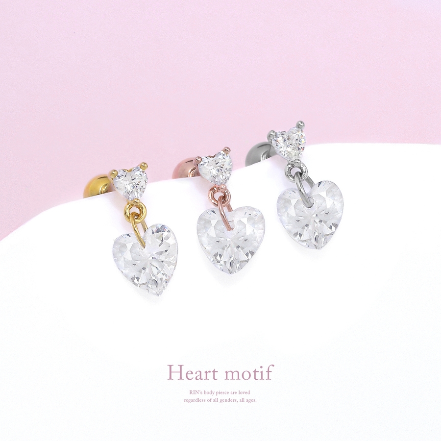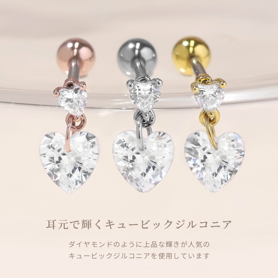 軟骨ピアス ジュエルハート揺れるチャームキュービックジルコニア ボディピアス
