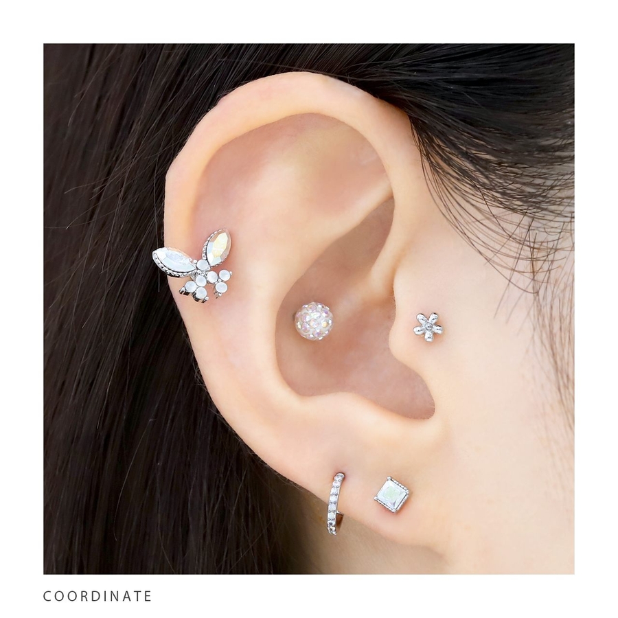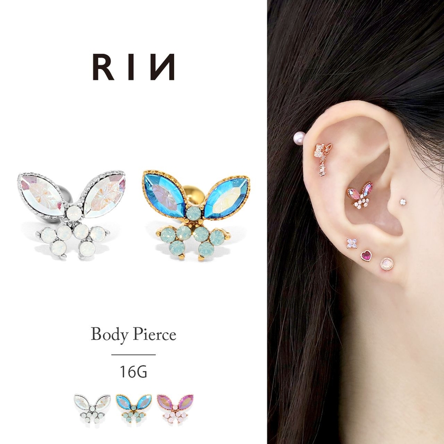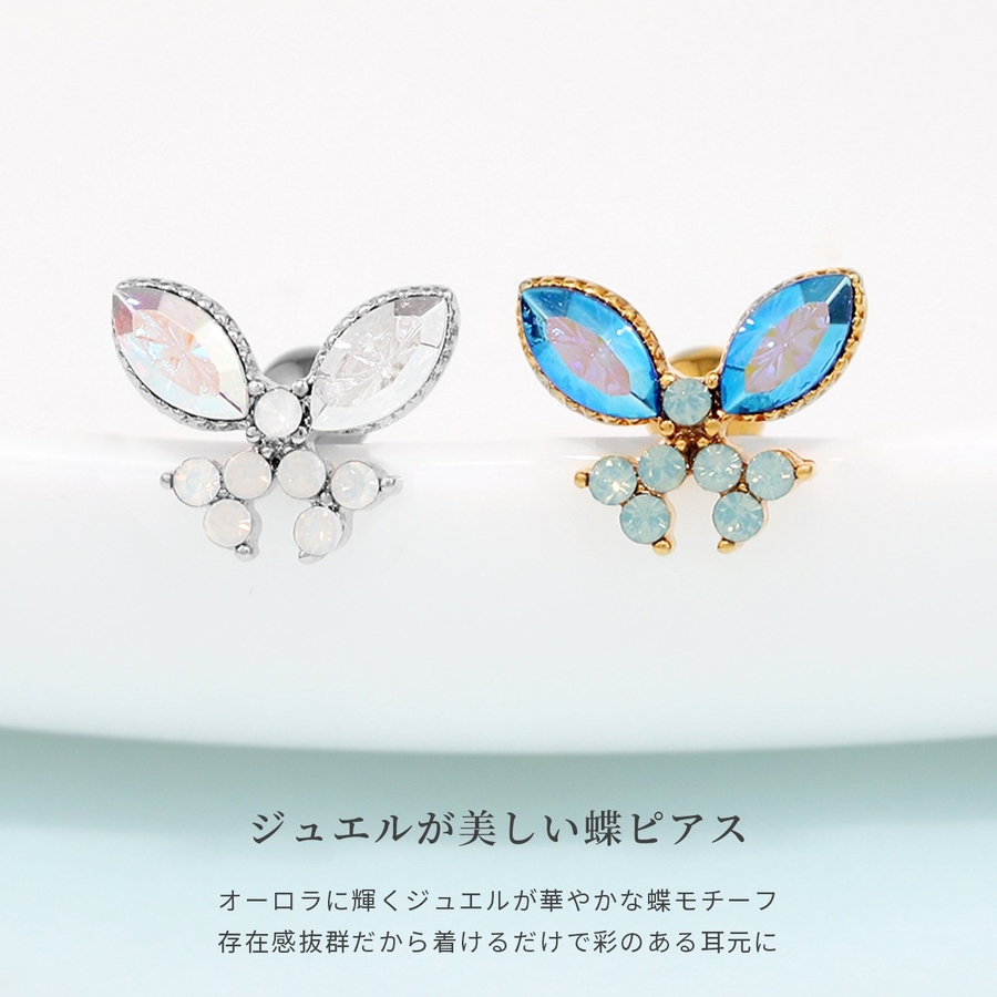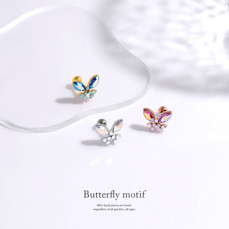 軟骨ピアス 蝶々バタフライジュエルキュービックジルコニアキラキラ ボディピアス