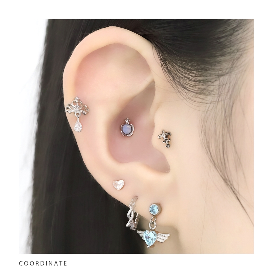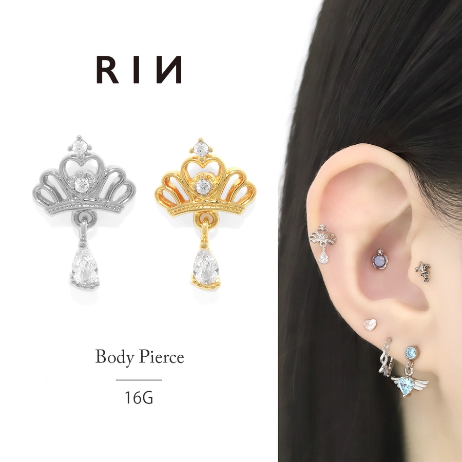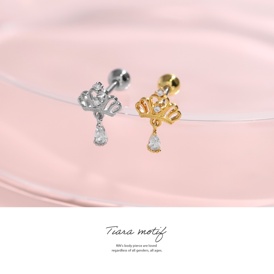 ボディピアス軟骨ピアス プリンセスティアラクラウン ジュエル王冠チャーム付き