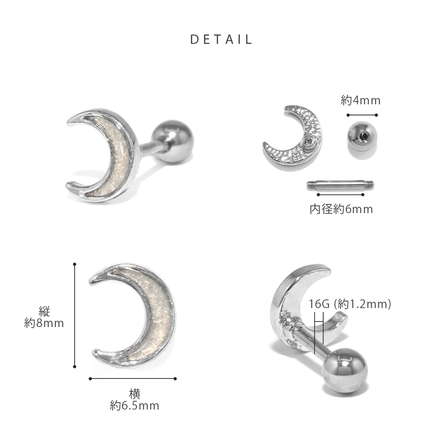 軟骨ピアス かわいい 月ムーンラメ可愛い三日月グリッター