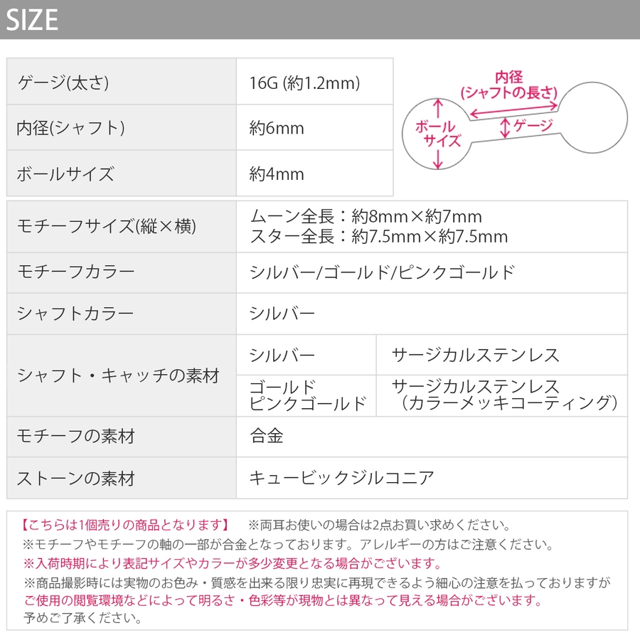 カラー | シルバー/ムーン / ゴールド/ムーン / ピンクゴールド/ムーン / シルバー/スター / ゴールド/スター / ピンクゴールド/スター |