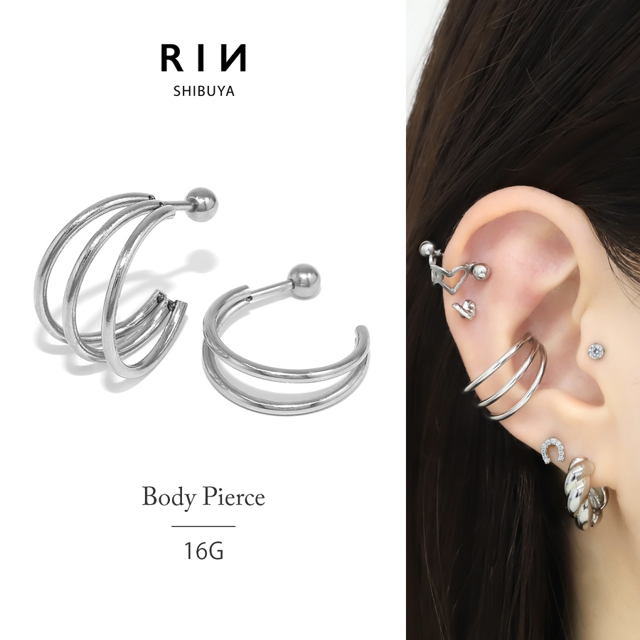 軟骨ピアス 2連3連ハーフフープシンプル洗練スタイリッシュ ボディピアス