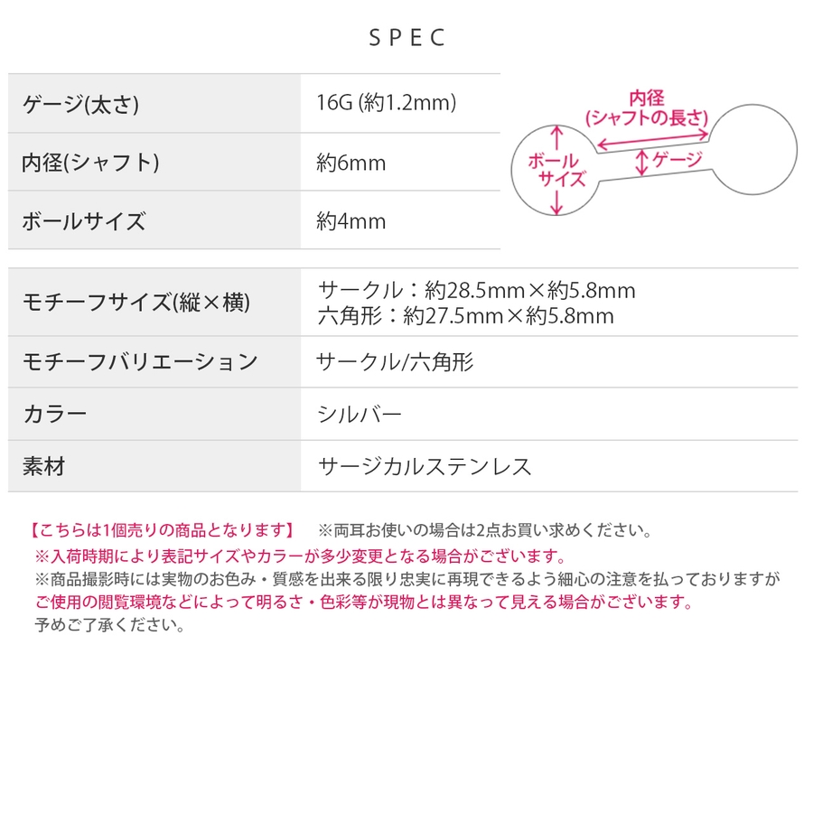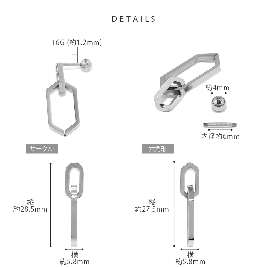 軟骨ピアス 金属アレルギー対応シェイプ揺れるラウンドオーバルヘキサゴン ボディピ…