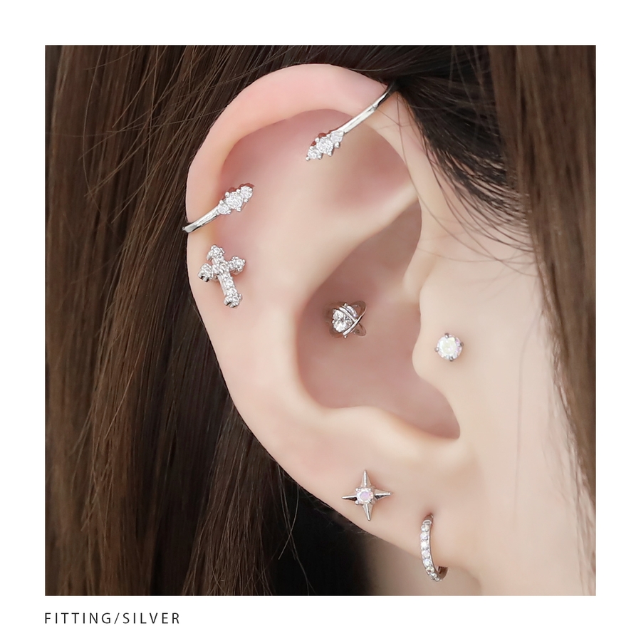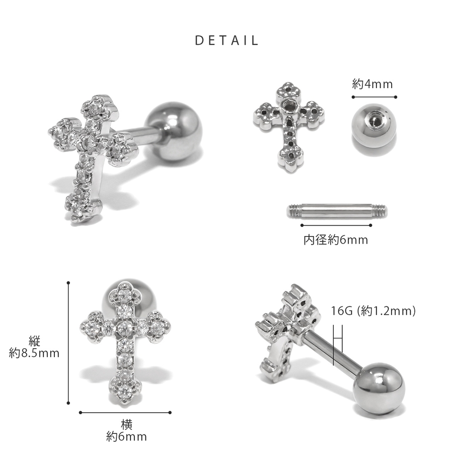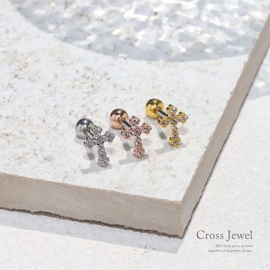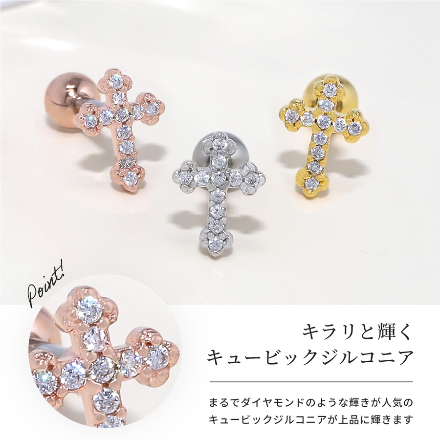 軟骨ピアス クロス十字架 ジュエルキュービックジルコニア