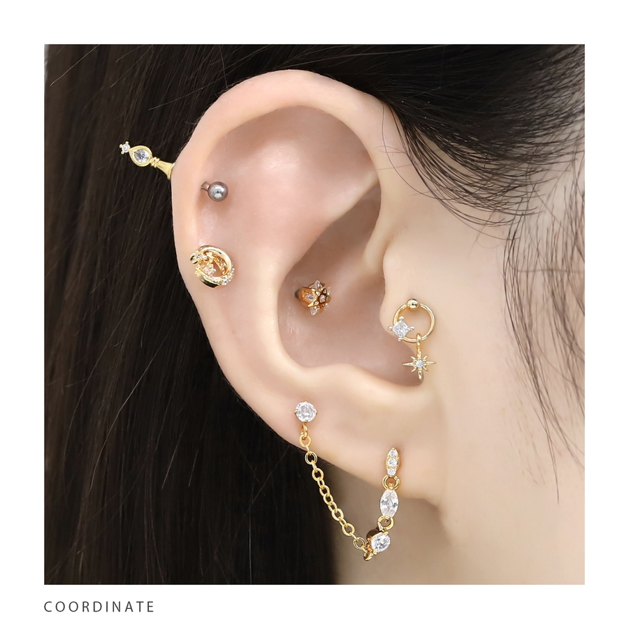 軟骨ピアス チェーンダブルバーベルキュービックジルコニアキレイ ボディピアス