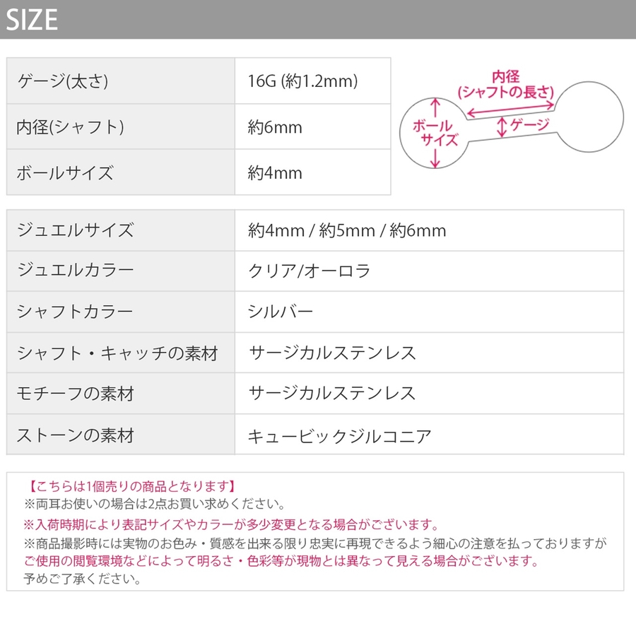 すぐ無くなっちゃってファーストピアスに戻した笑さん (20代 / 女性 )購入アイテム:カラー クリアモチーフサイズ 5mm