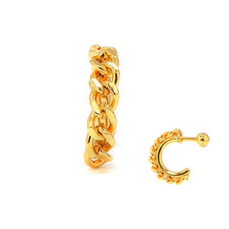 金色、存在感ありでした。チェーンなので、そんなに凝ったデザインではないけど、実際耳元に付けたら似合うか心配でしたが、大丈夫でした。