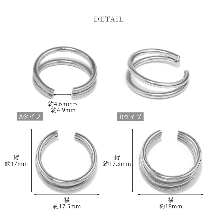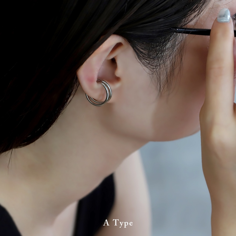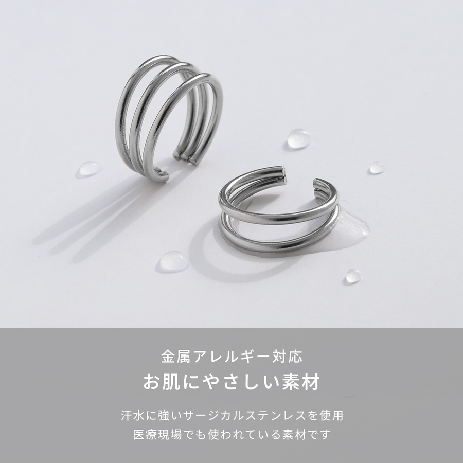 ステンレスイヤリング イヤカフ シルバー2連3連