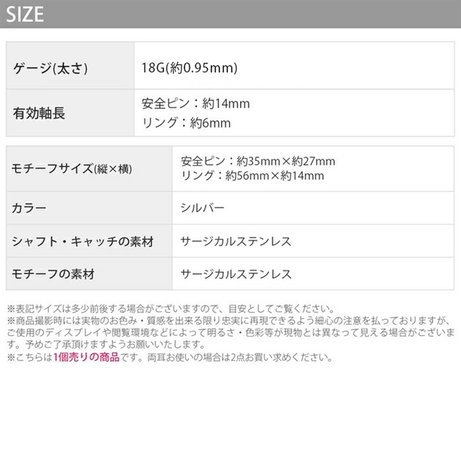 安全ピン約35mm×約27mm リング:約56mm×約14mm