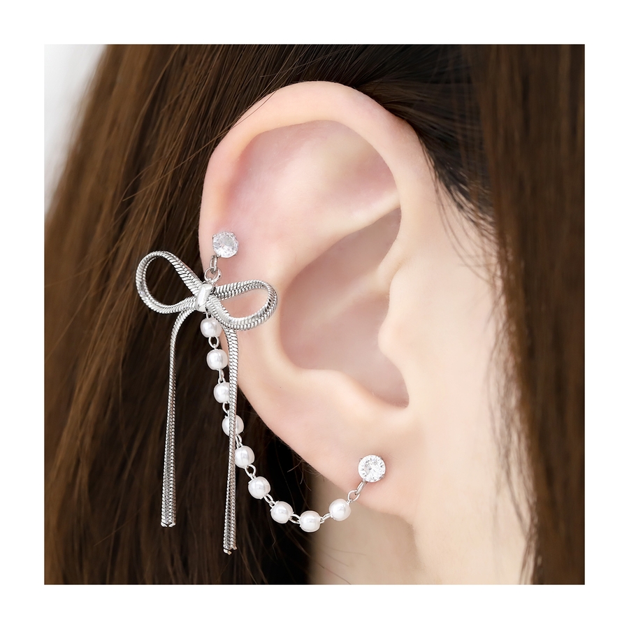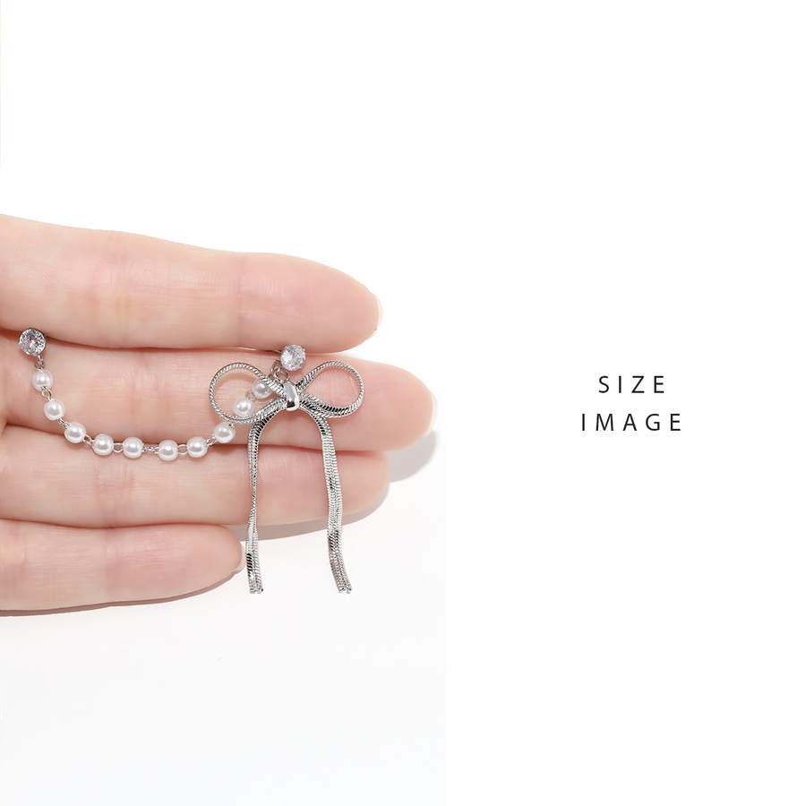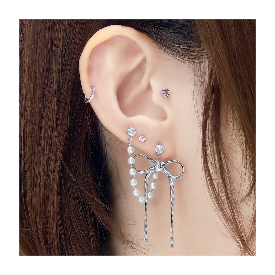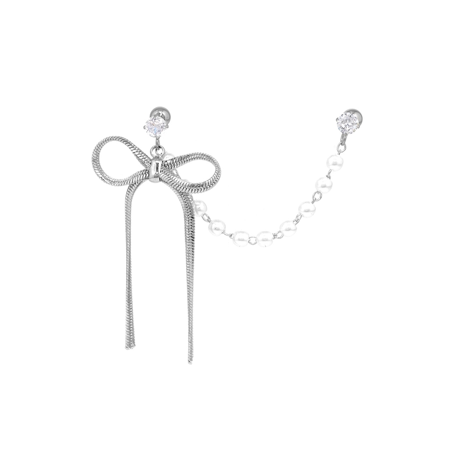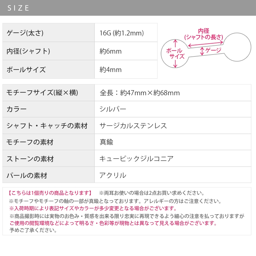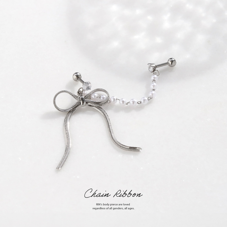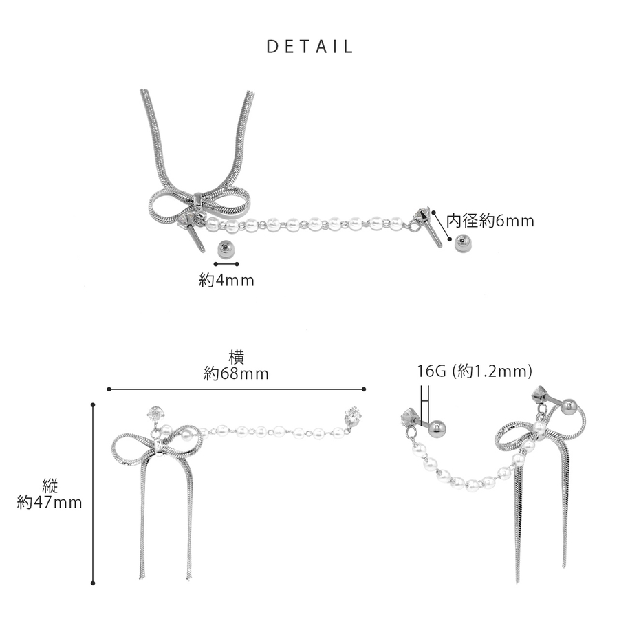 軟骨ピアス リボンパール チェーンキュービックジルコニア真珠ストレートバーベル2…
