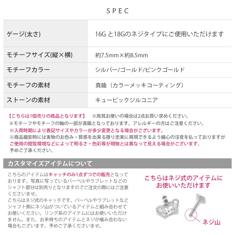 キャッチ クラウン王冠ジュエルジルコニアかわいいおしゃれ ボディピアス
