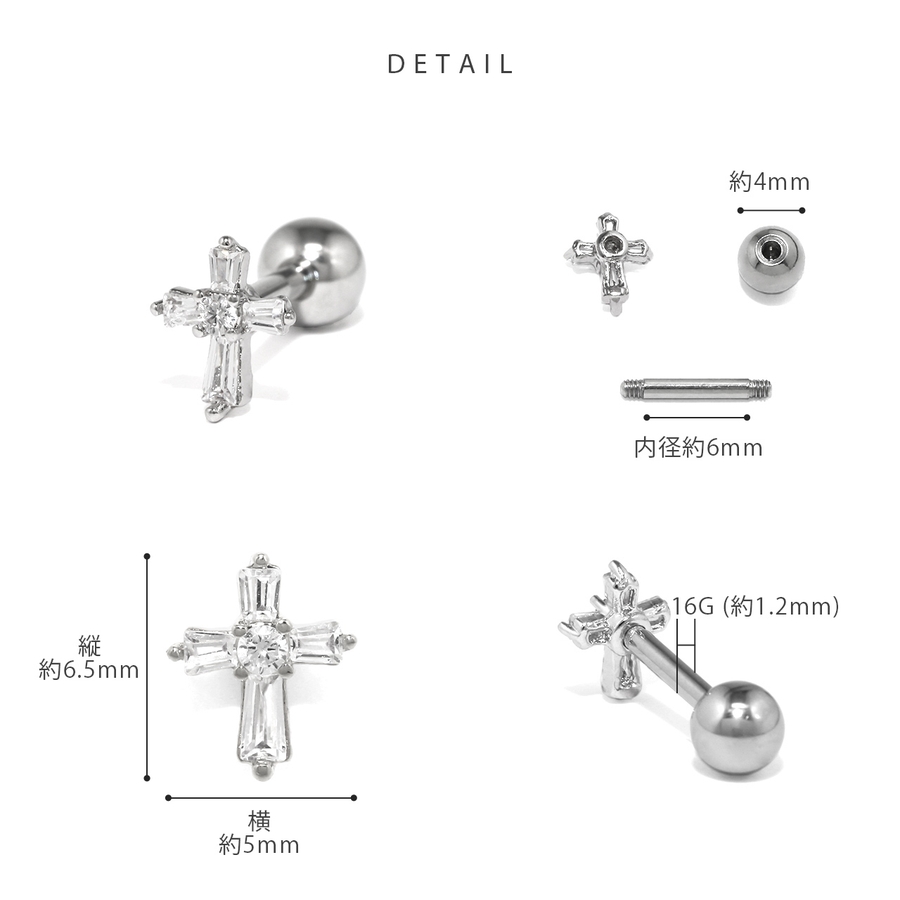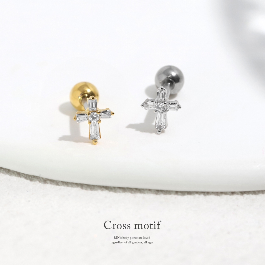 ボディピア 軟骨ピアス クロス十字架ジュエル