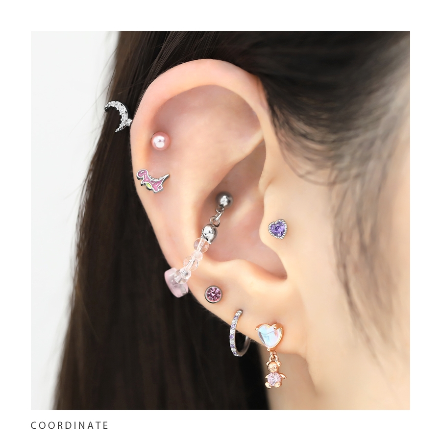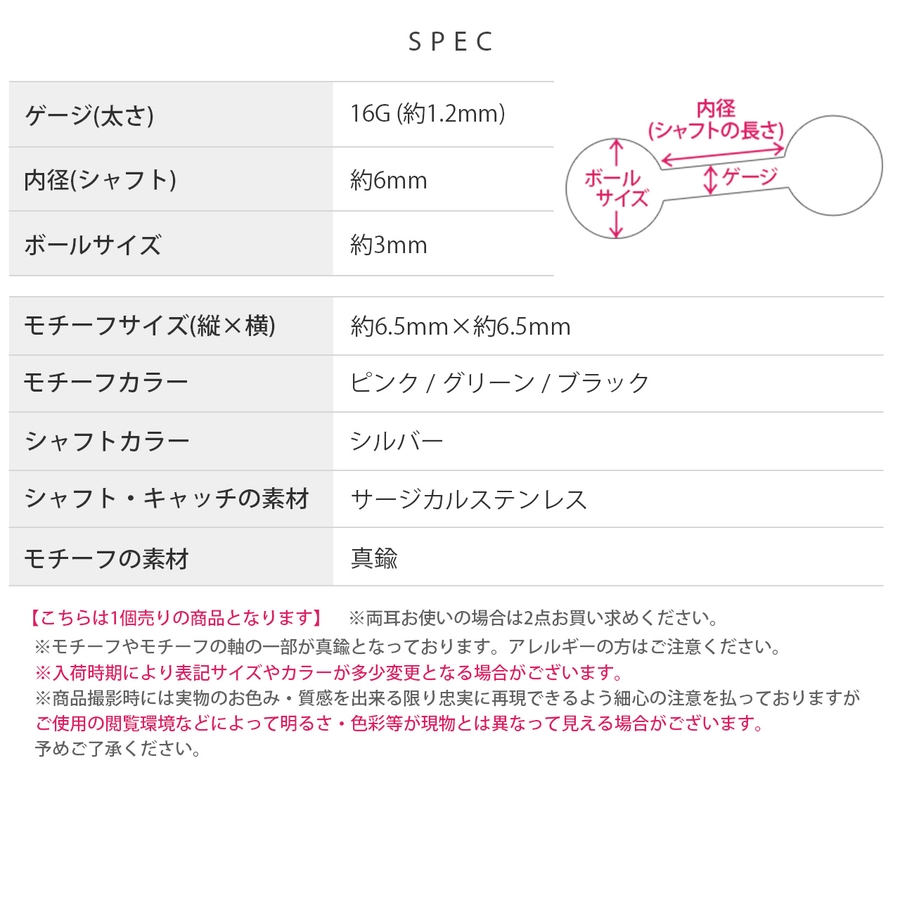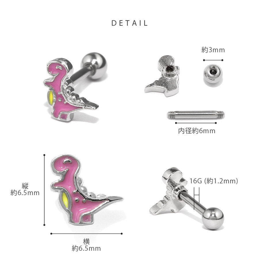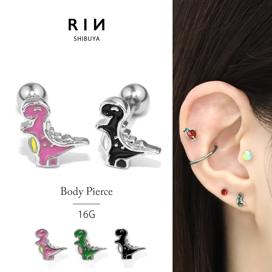 軟骨ピアス 恐竜ダイナソーポップかわいい ピンクグリーンブラック