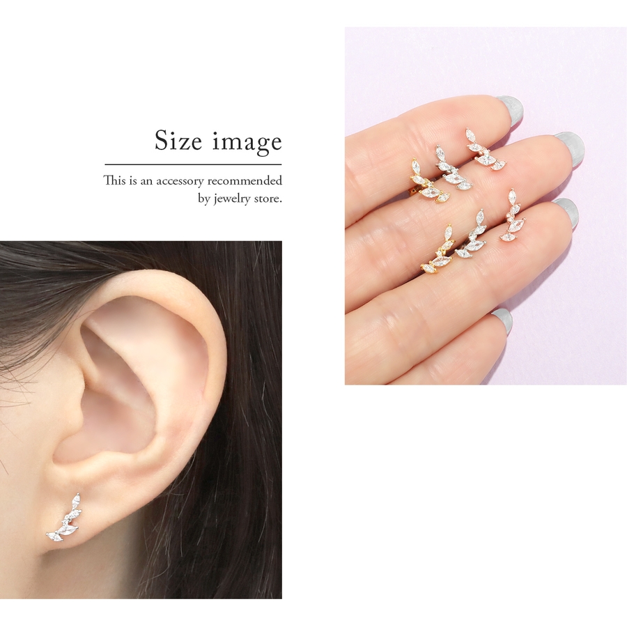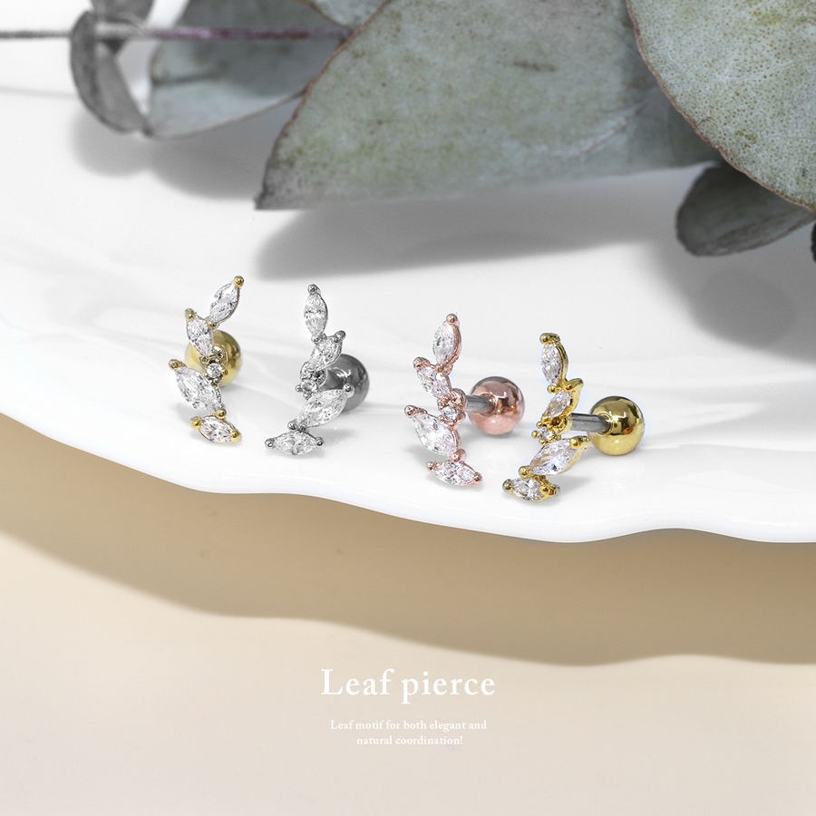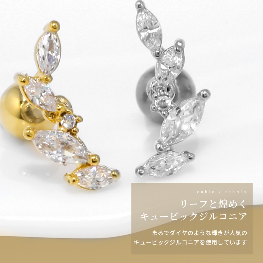 軟骨ピアス リーフ葉っぱイヤーフィット 植物キラキラキュービックジルコニア