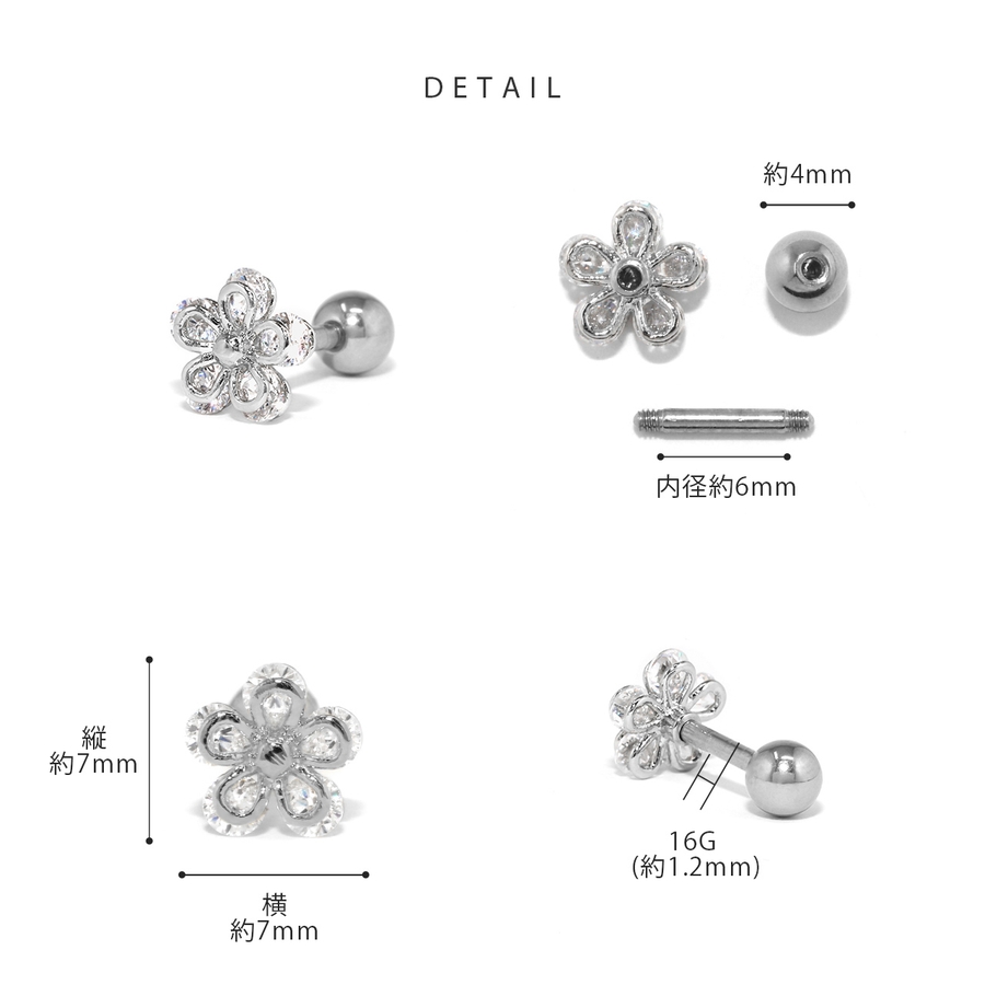 軟骨ピアス お花フラワー ジュエルキュービックジルコニア