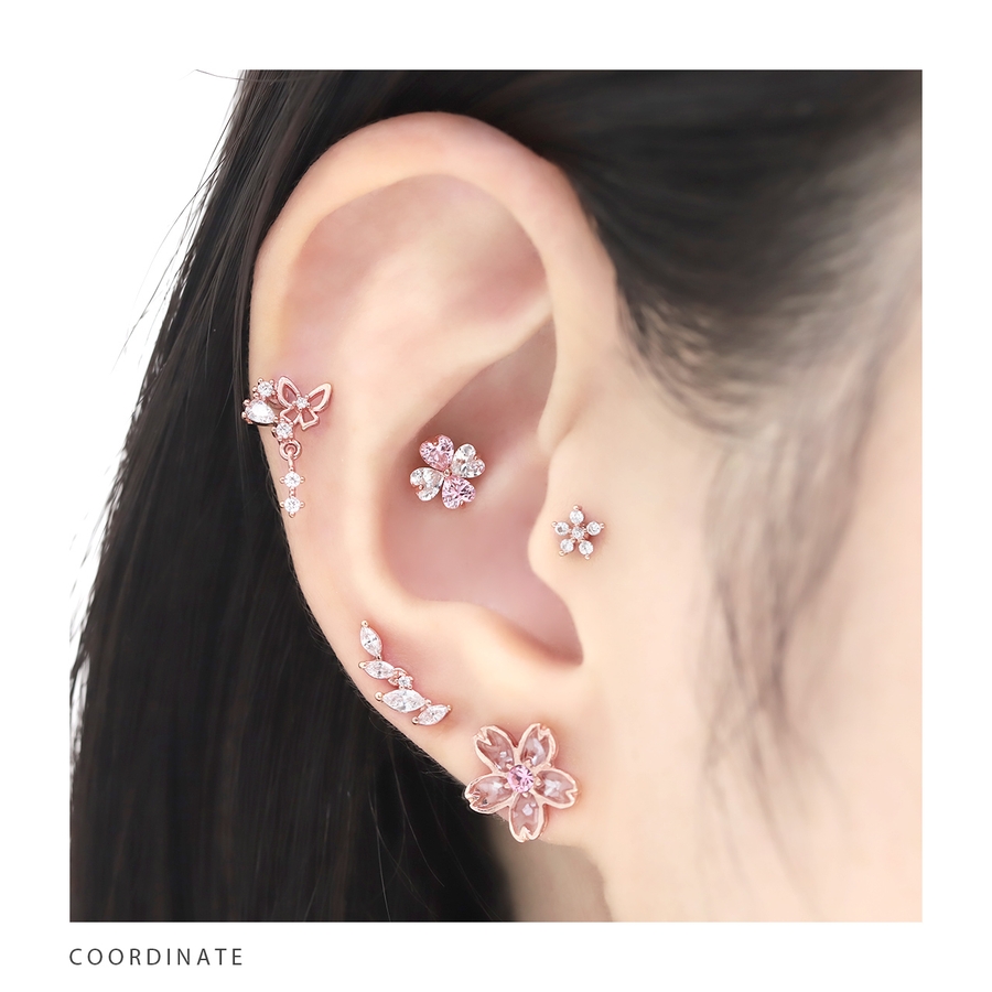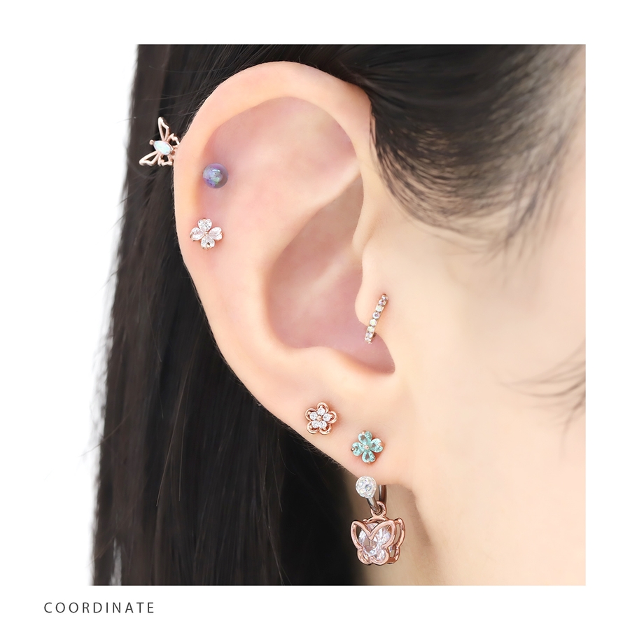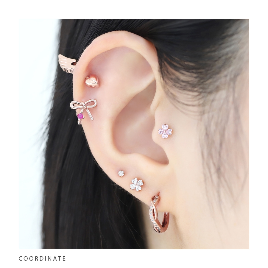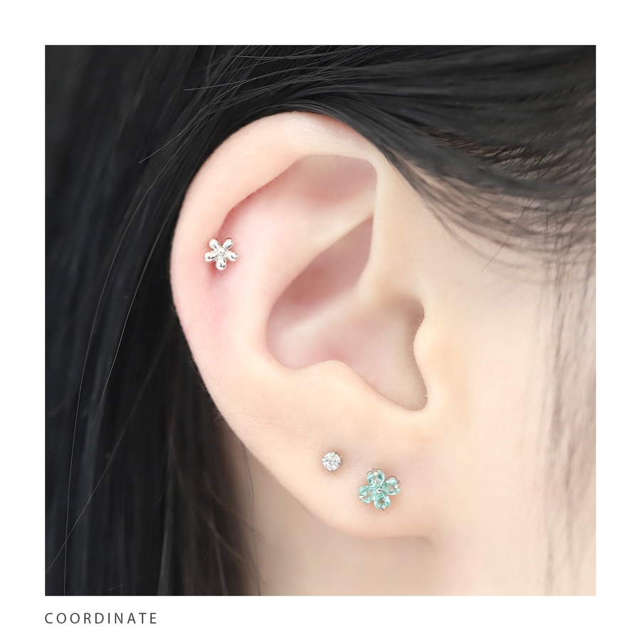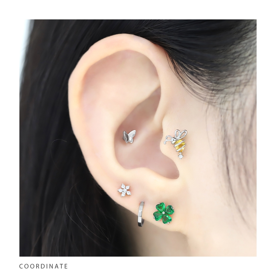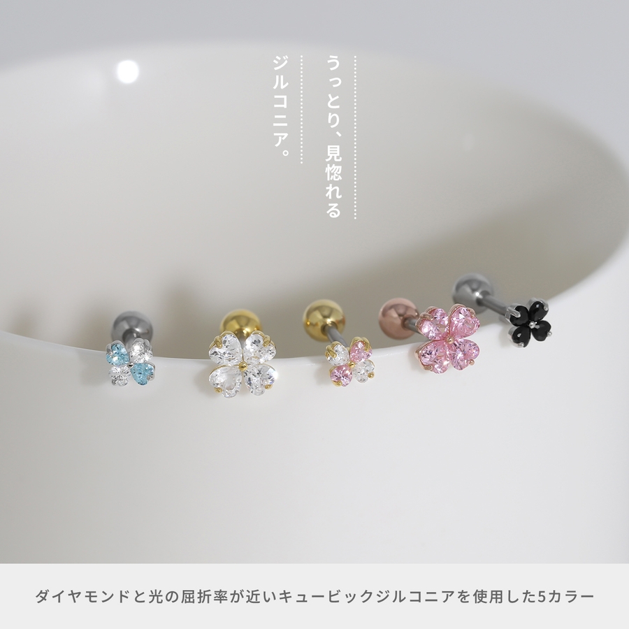 軟骨ピアス クローバー四つ葉ジュエルキュービックジルコニア ボディピアス