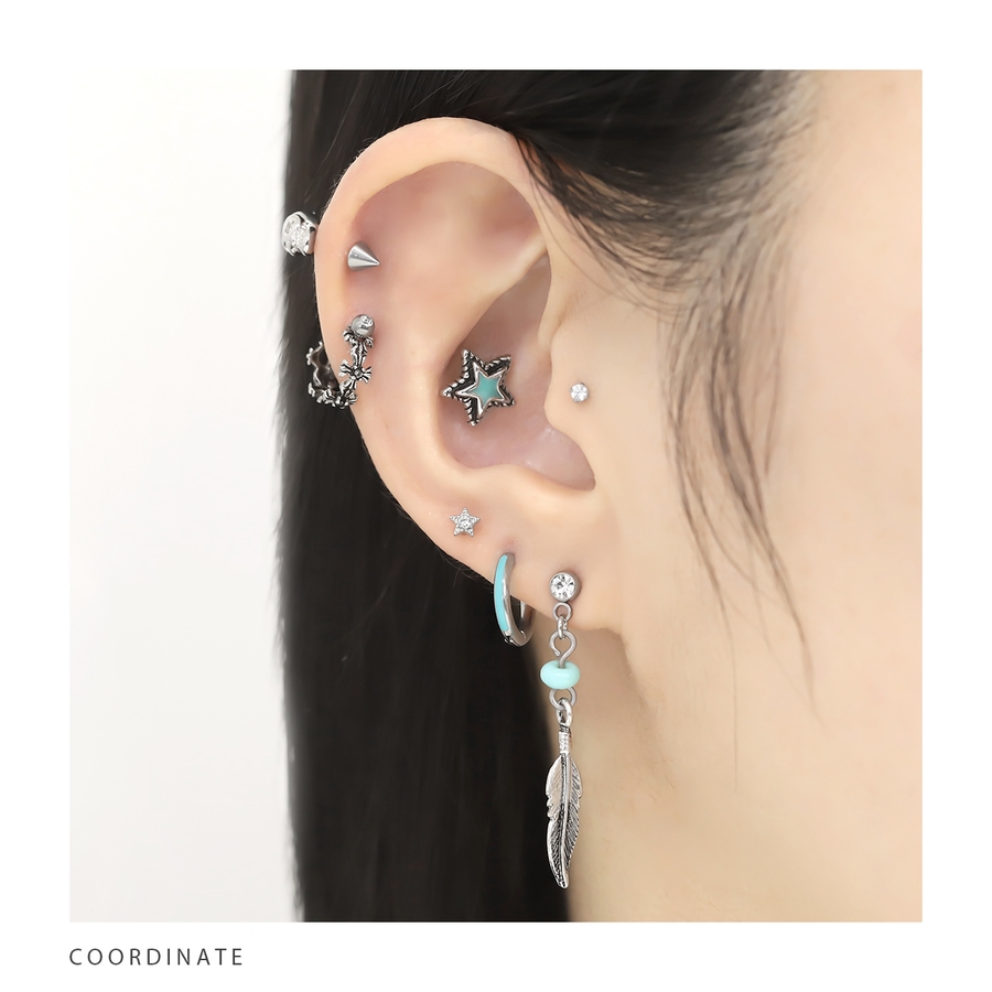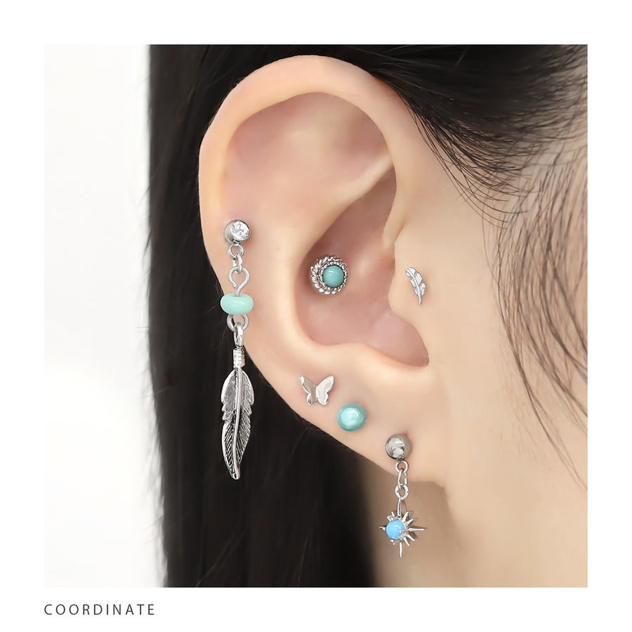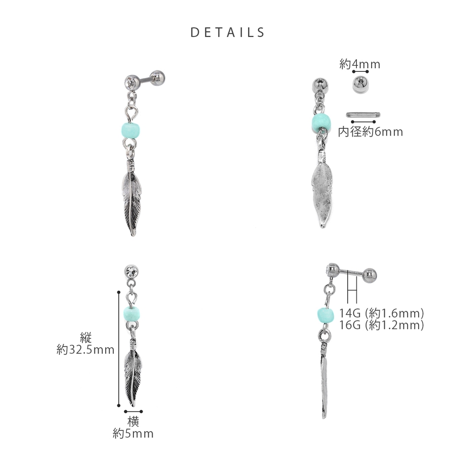 軟骨ピアス フェザー羽ターコイズエスニックネイティブ金属アレルギー ボディピアス