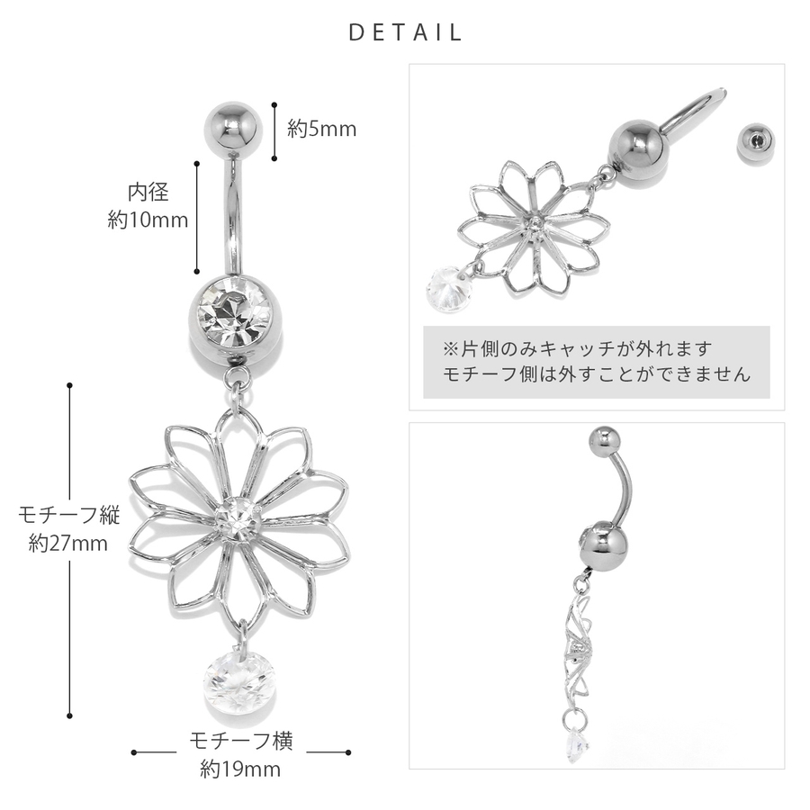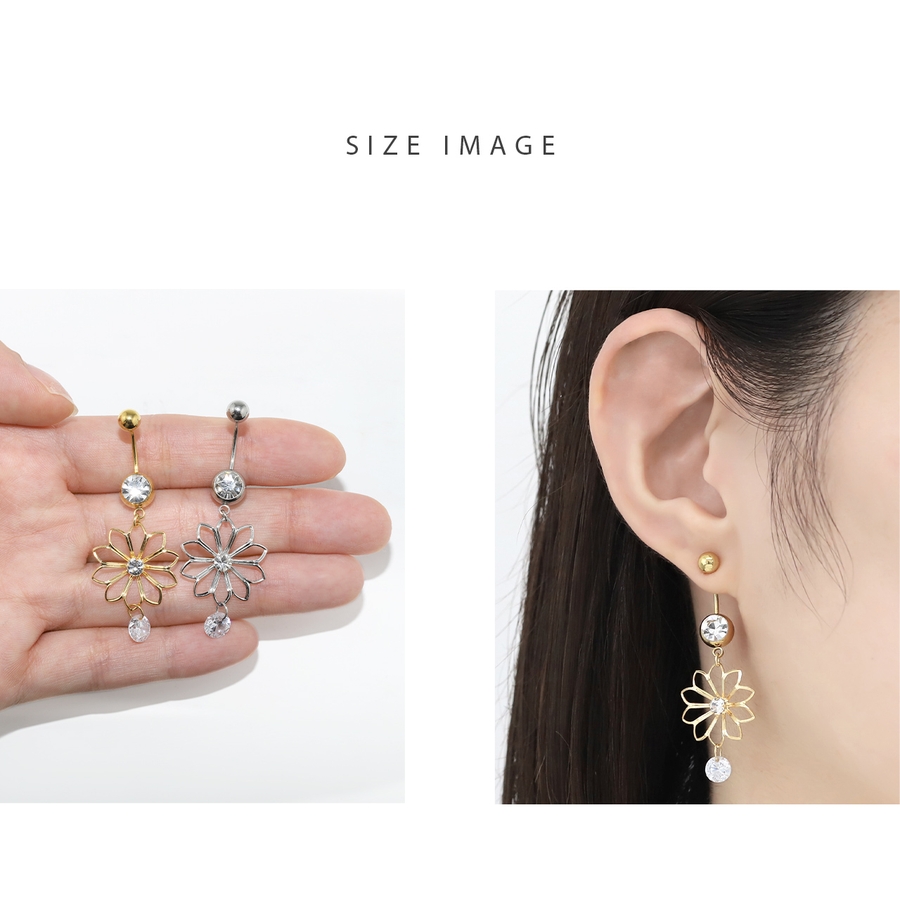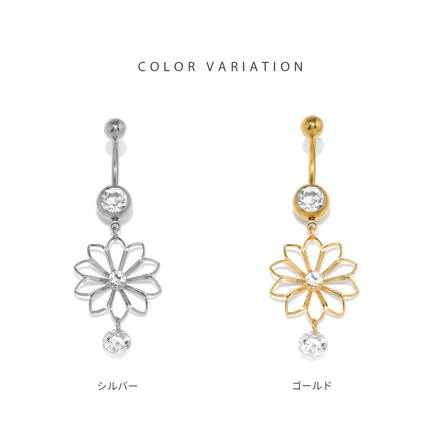 へそピアス 花フラワーかわいい キラキラジュエルカーブバーベル