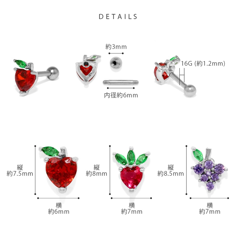 軟骨ピアス 果物フルーツリンゴイチゴブドウいちごグレープジュエル ボディピアス