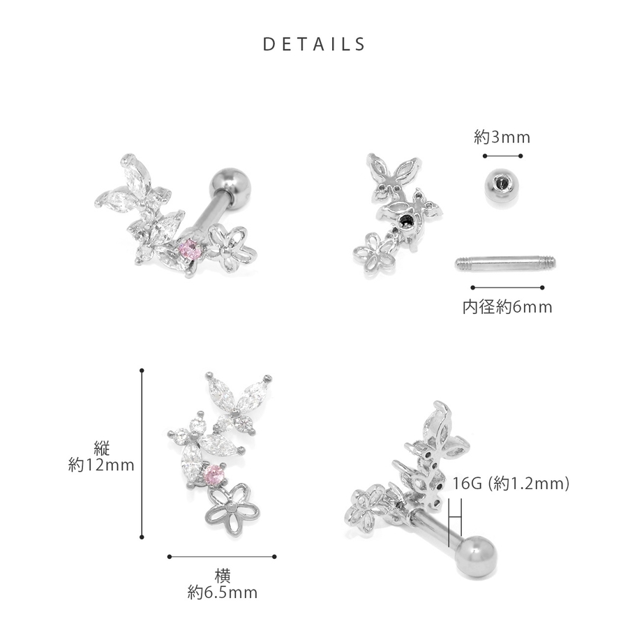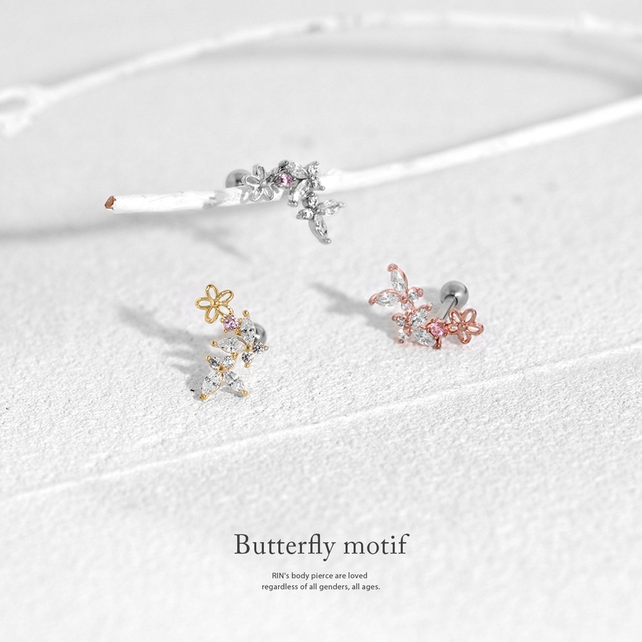 軟骨ピアス 蝶花バタフライフラワージュエルきれいイヤーフィットインナーコンク ボ…