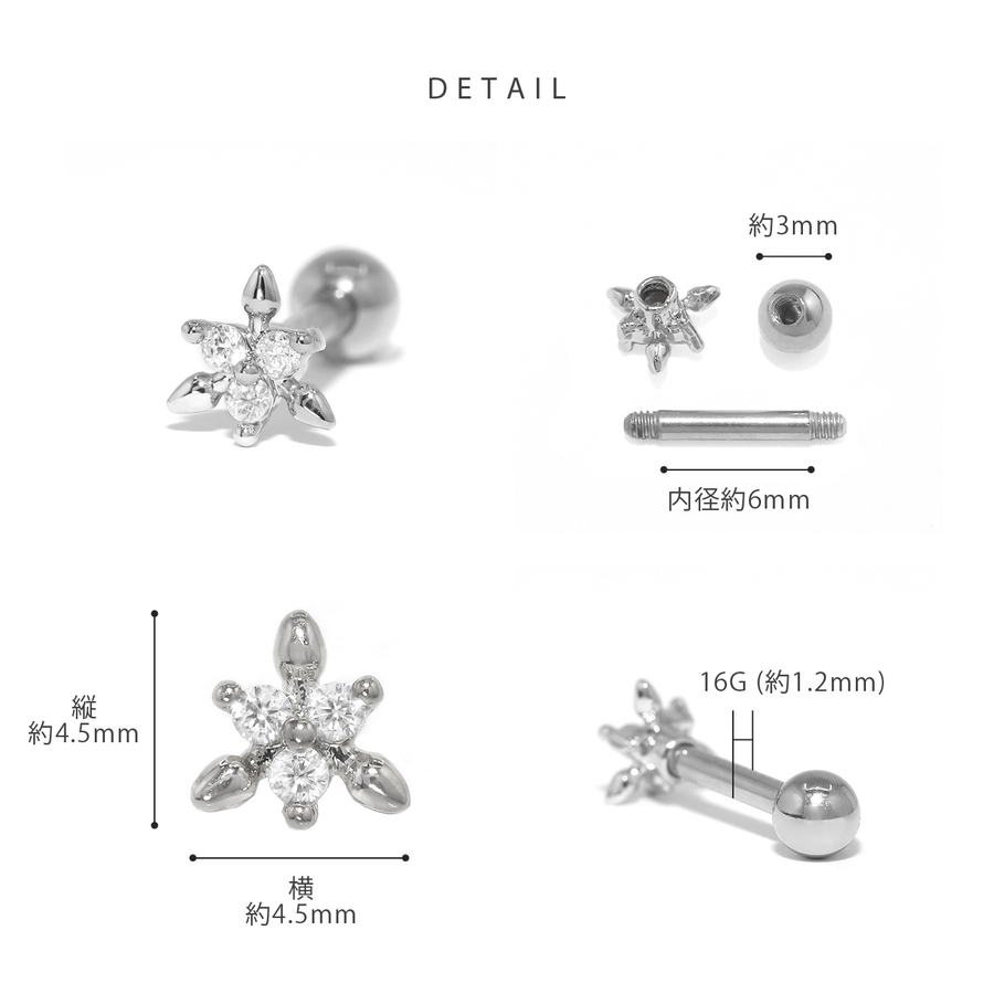 軟骨ピアス ジュエルトリニティ六花雪六星キュービックジルコニア ボディピアス