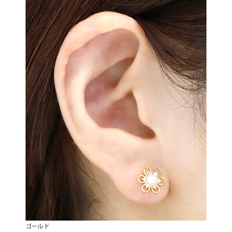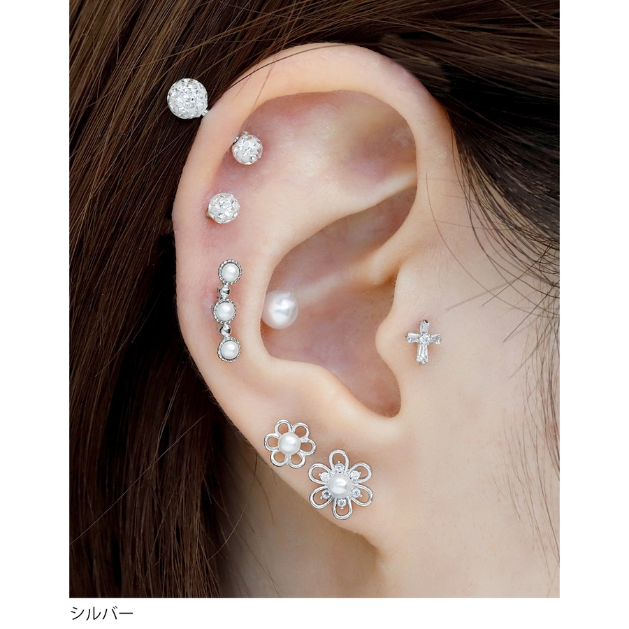 軟骨ピアスかわいい 花フラワーパール ジュエル
