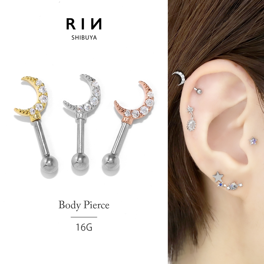| ショップ情報 | ボディピアス専門店「凛RIN」では 軟骨ピアスやキャッチ、ピアスチャームを中心に様々な商品を激安で販売しています! へそピアスや軟骨ピアス、トラガスやラブレットなどピアスをつけたい部位ごとに商品を検索できるほか、「ストレートバーベル」「バナナバーベル」などピアスの種類・形状ごと、人気の14Gや16Gはもちろん18Gや12Gなど太さ(ゲージ)ごとにお気に入りのボディピアスを探すこともできます。 更に、凛RINスタッフおすすめのコーディネート画像も絶賛掲載中!ぜひご覧ください☆ |