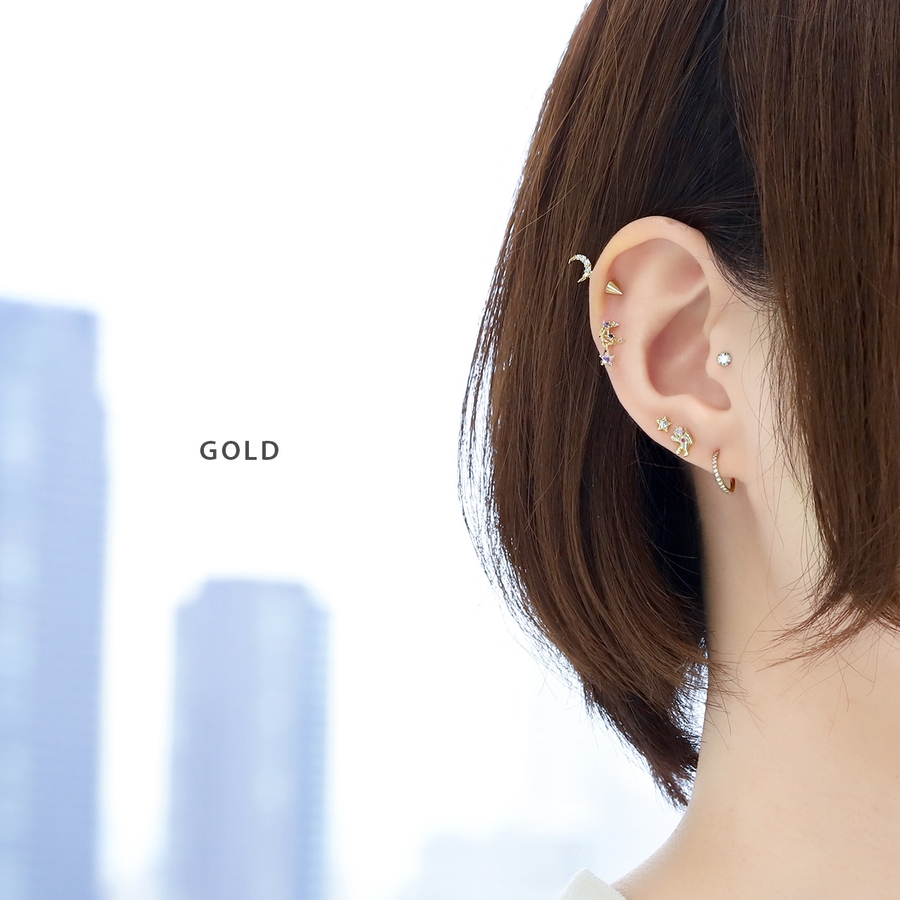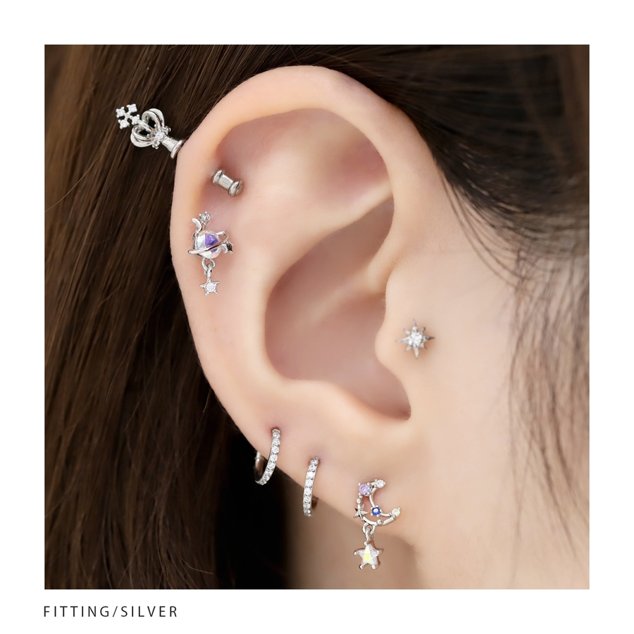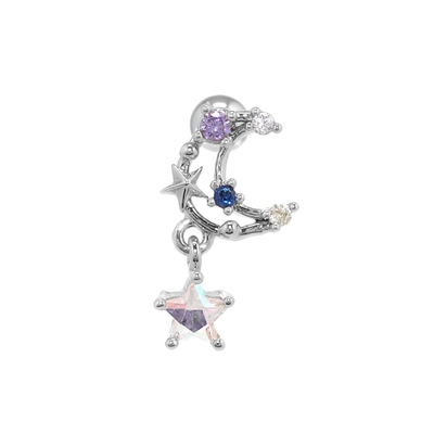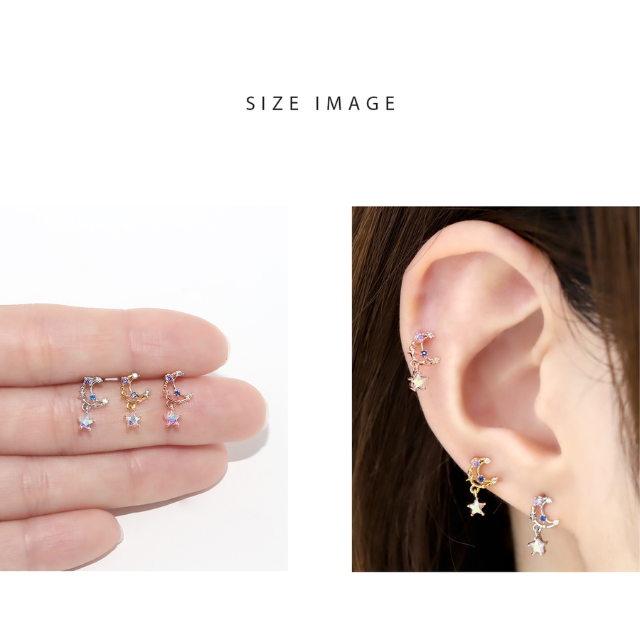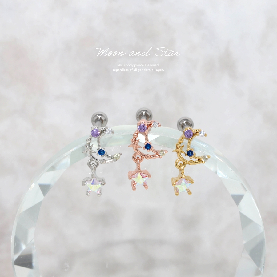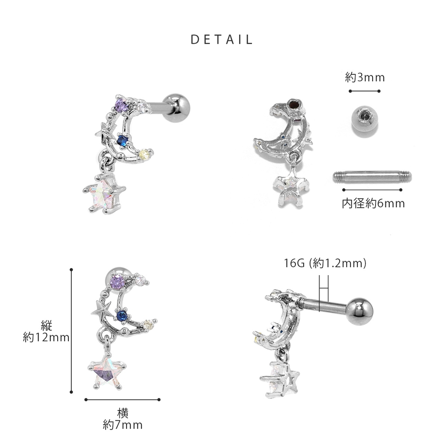 軟骨ピアス 月ムーン星スター宇宙 キラキラキュービックジルコニアストレートバーベ…