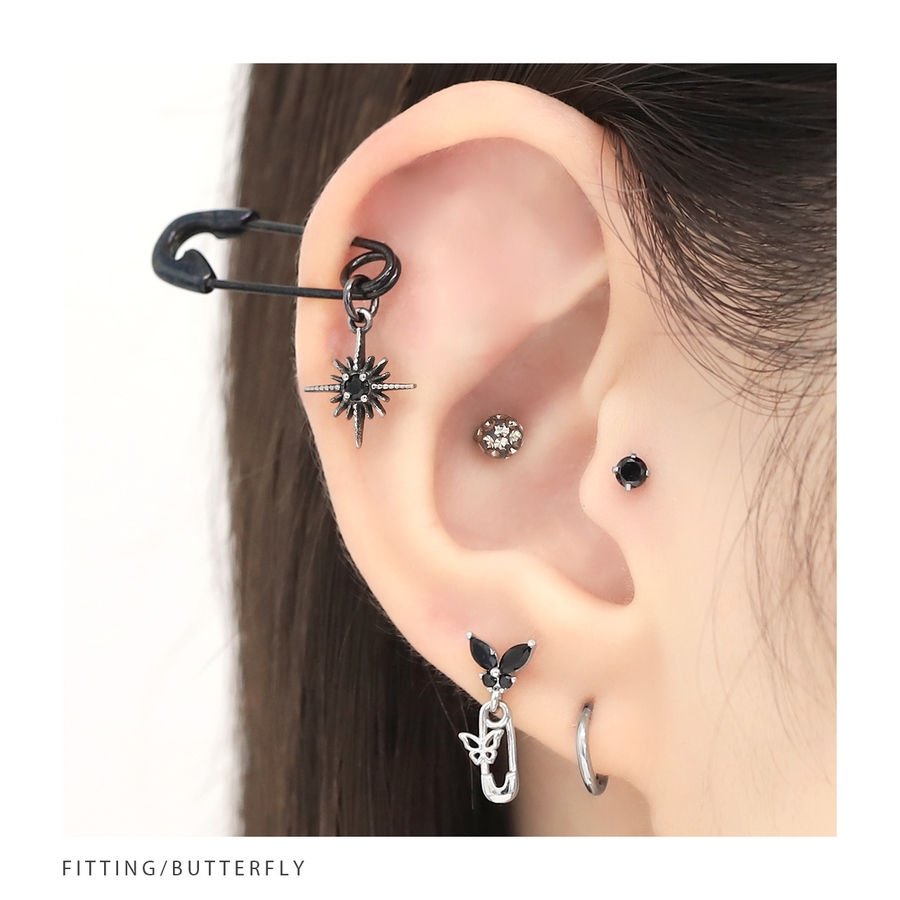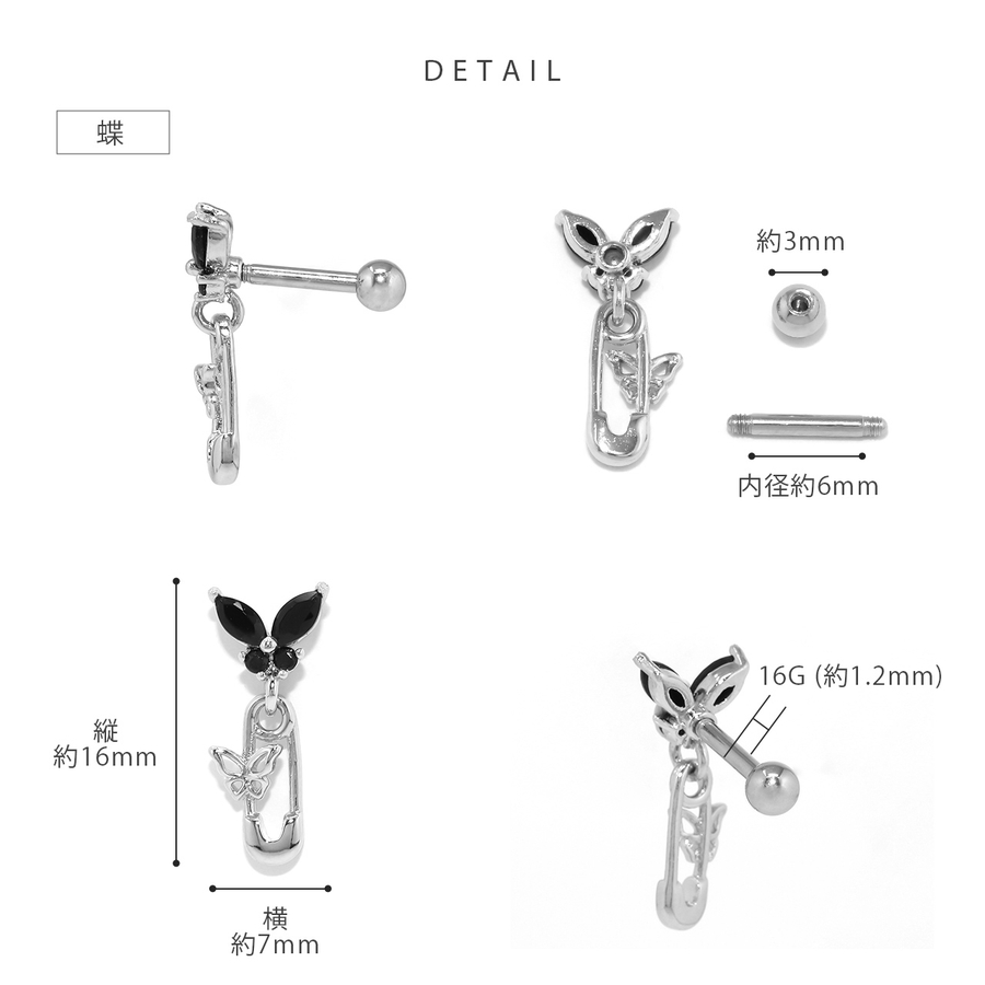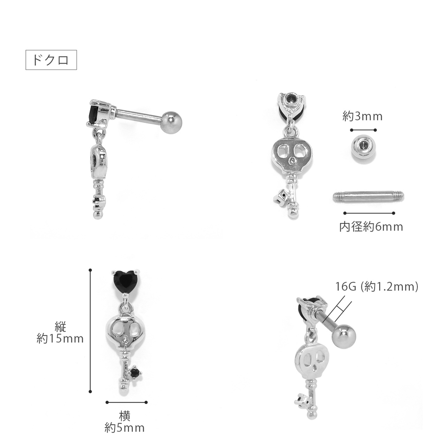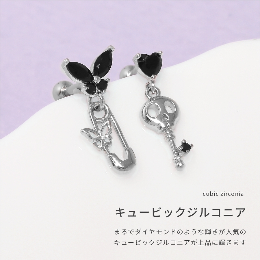 軟骨ピアス 蝶ドクロ 安全ピン鍵ハート