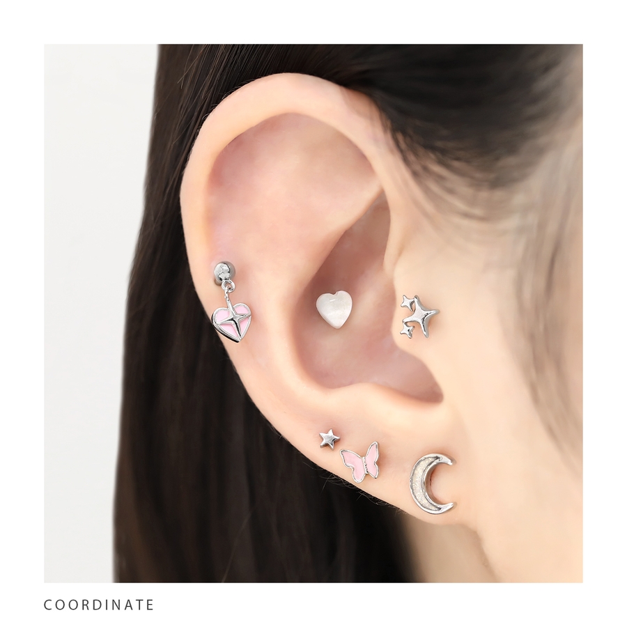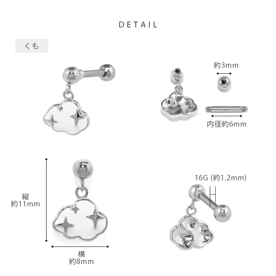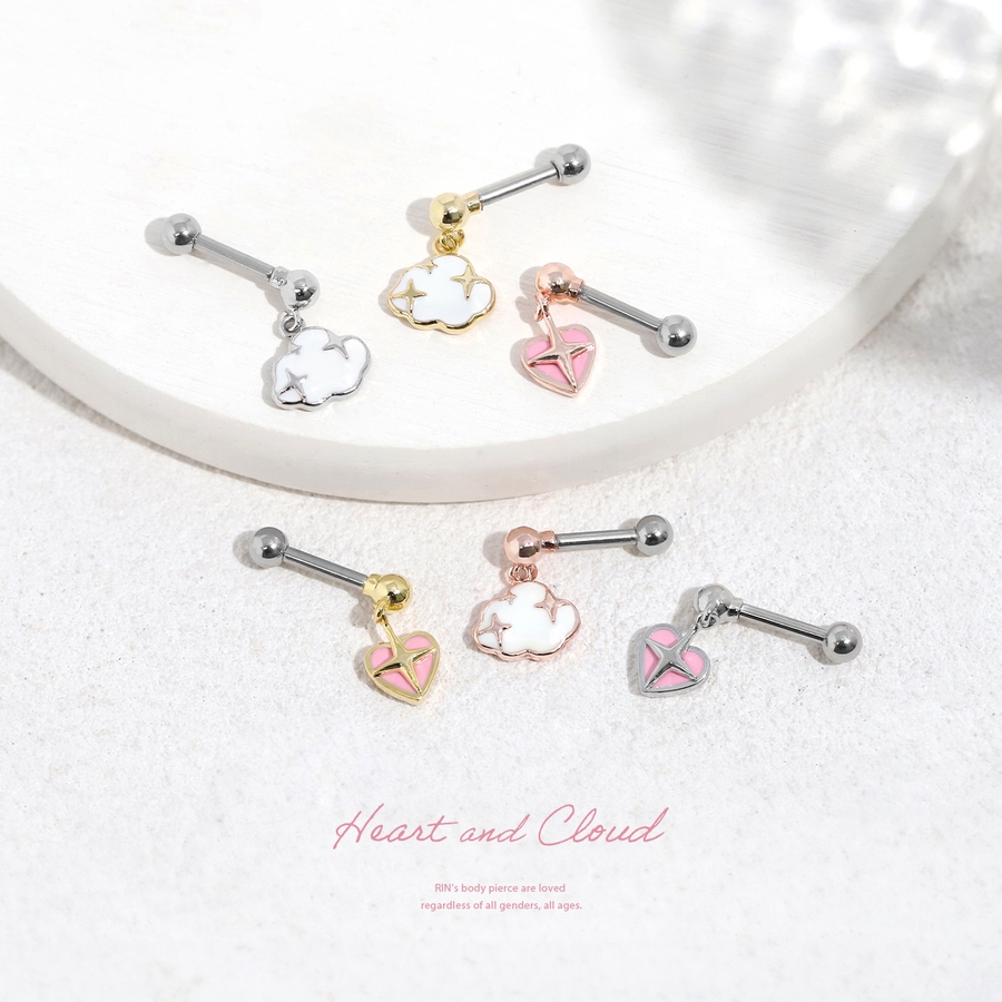 軟骨ピアス ハート雲チャーム揺れるカジュアル ボディピアス
