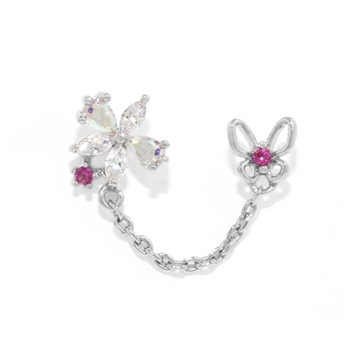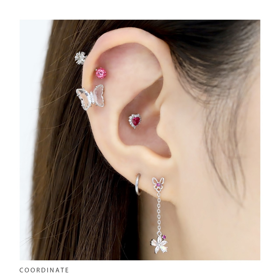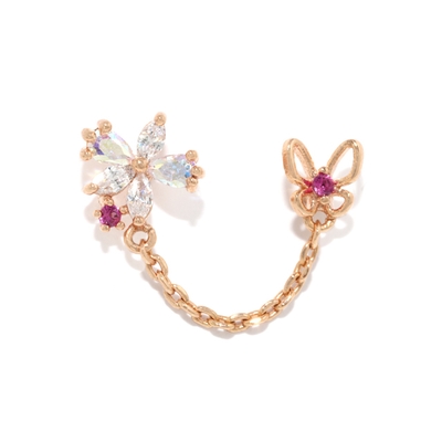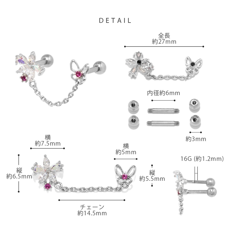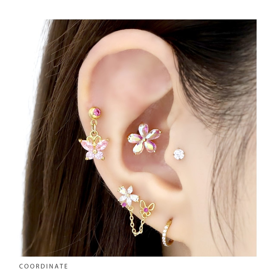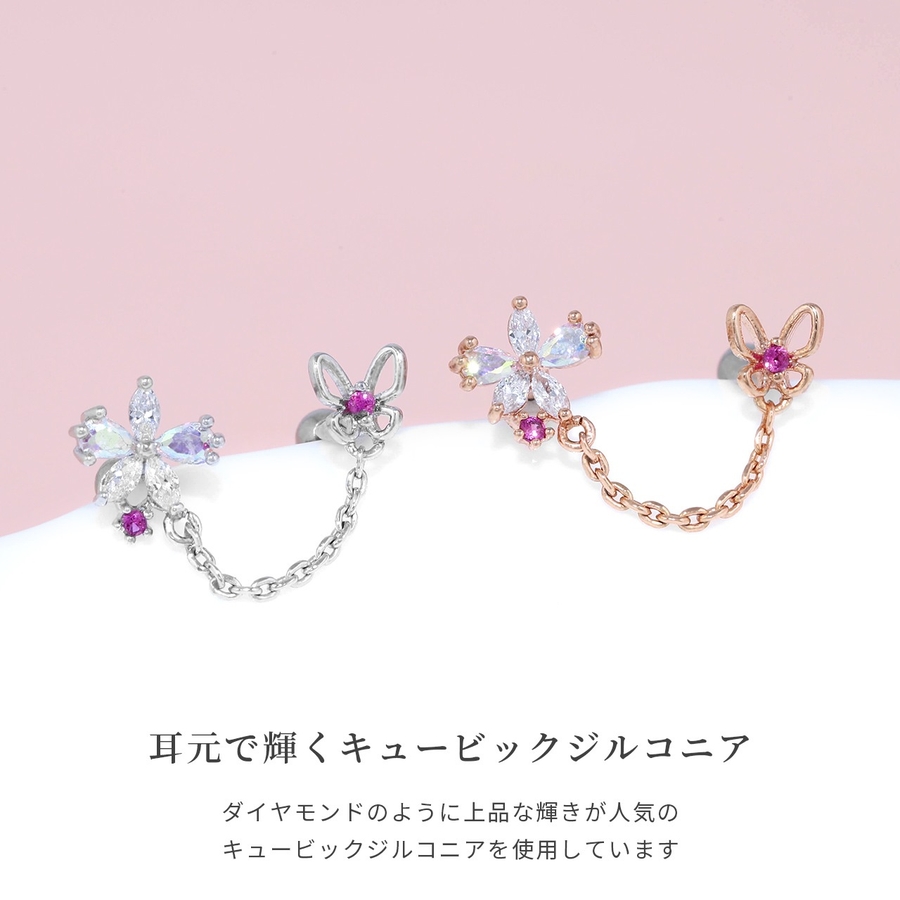 軟骨ピアス 蝶々ジュエル桜花フラワーバタフライチェーンキュービックジルコニア ボ…