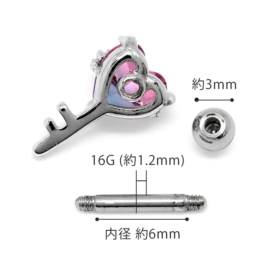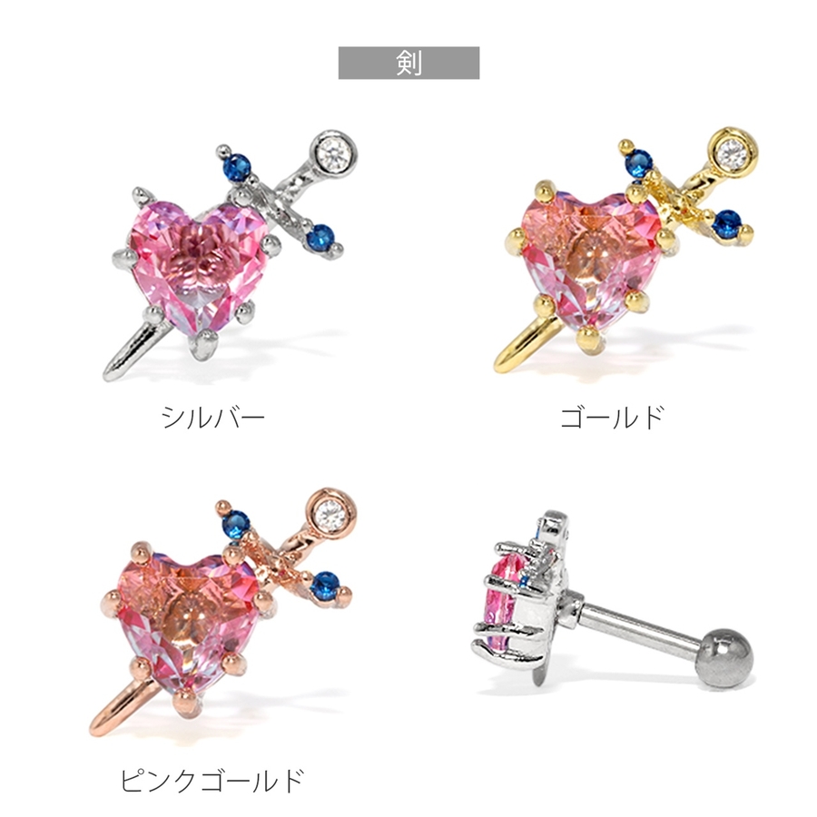 小さいですがピンクから青みがかった薄ピンクへのグラデーションと上側に付いている青のストーンが引き立てあっててカッコよさもあるイメージになってます!さん (20代 / 女性 )購入アイテム:カラー 剣・ゴールドゲージ 16G - 某曲イメージピアスコーデに使いたくて
