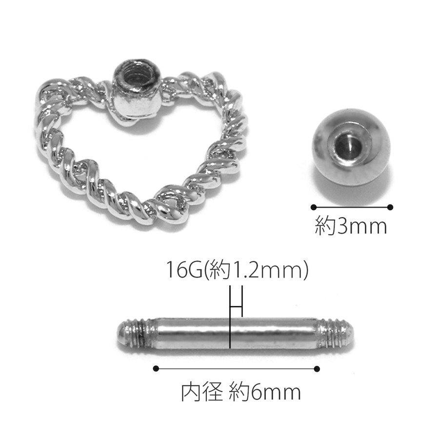 軟骨ピアス ハートフレーム ハートツイストデザイン