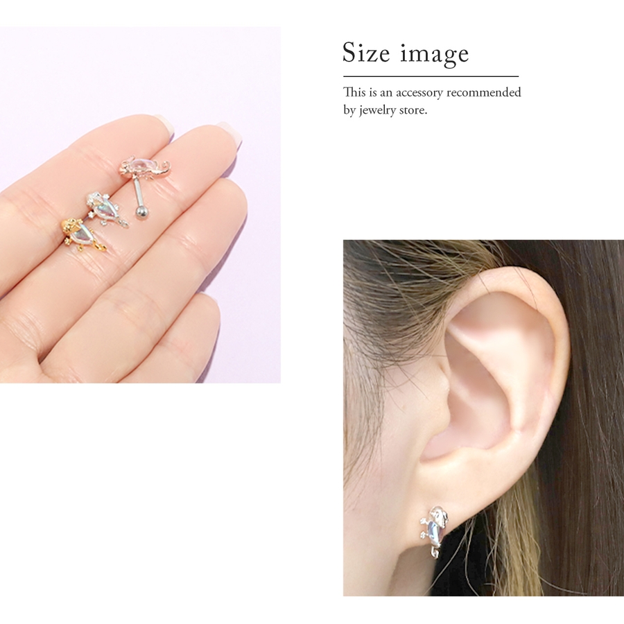軟骨ピアスカメレオンかめれおん 爬虫類は虫類 キラキラオーロラ