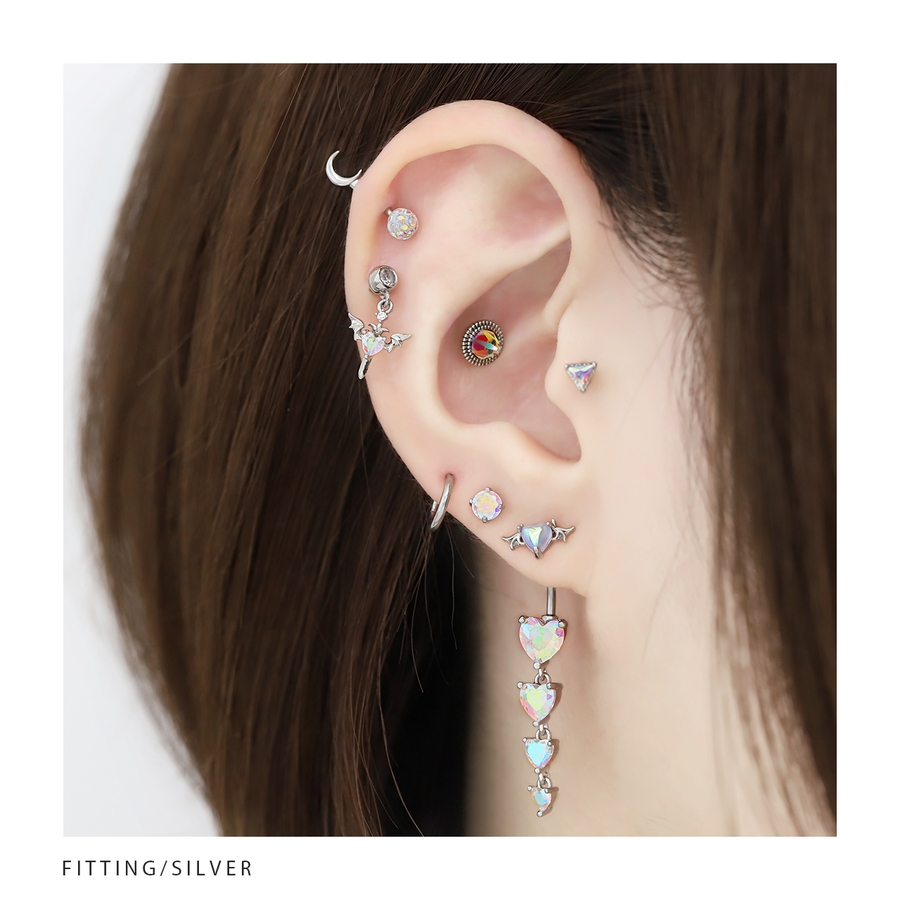 軟骨ピアス ハートはーと オーロラかわいいキュービックジルコニア