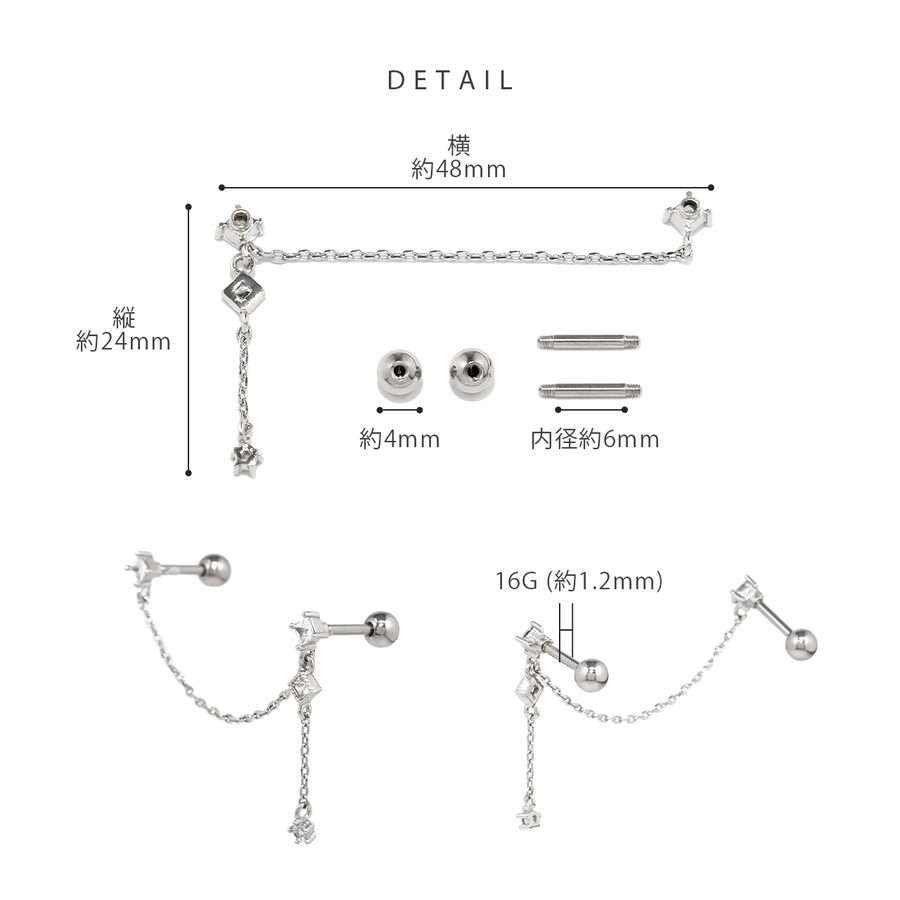 軟骨ピアス チェーンピアスジュエル キュービックジルコニアかわいい
