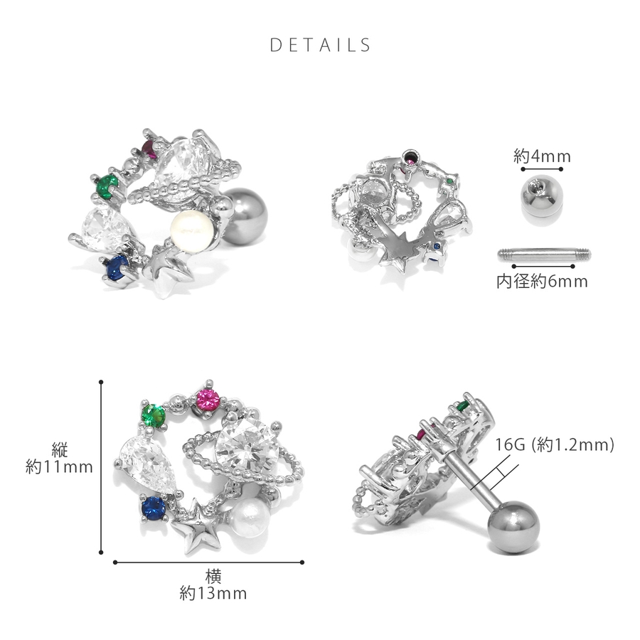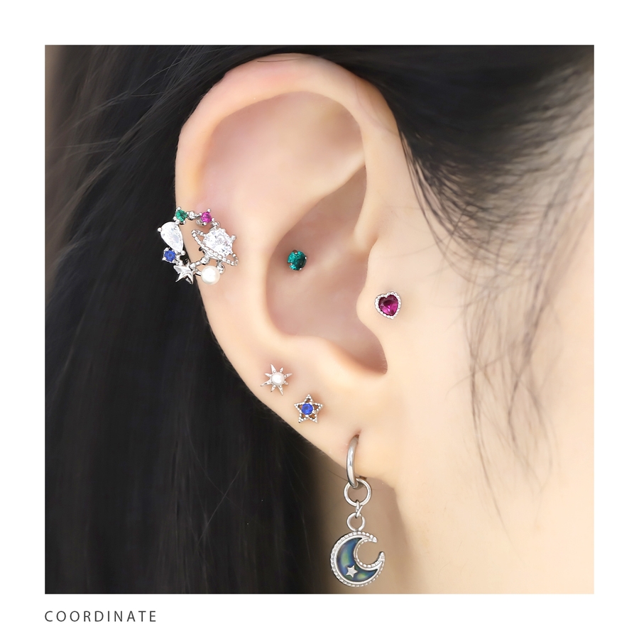 軟骨ピアス 宇宙星スターコスモキュービックジルコニアキラキラ個性的 ボディピアス