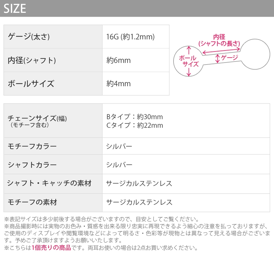 【Cタイプ】軟骨ピアス かっこいい 16G