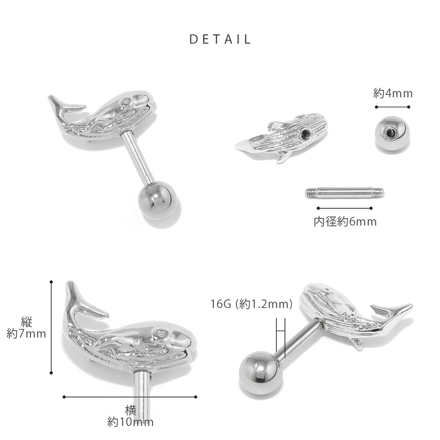 軟骨ピアス クジラホエールかわいい 個性的夏ストレートバーベル