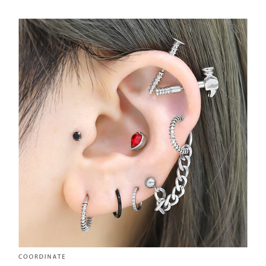 軟骨ピアス コイル巻きシルバーステンレスクールスタイリッシュ ボディピアス