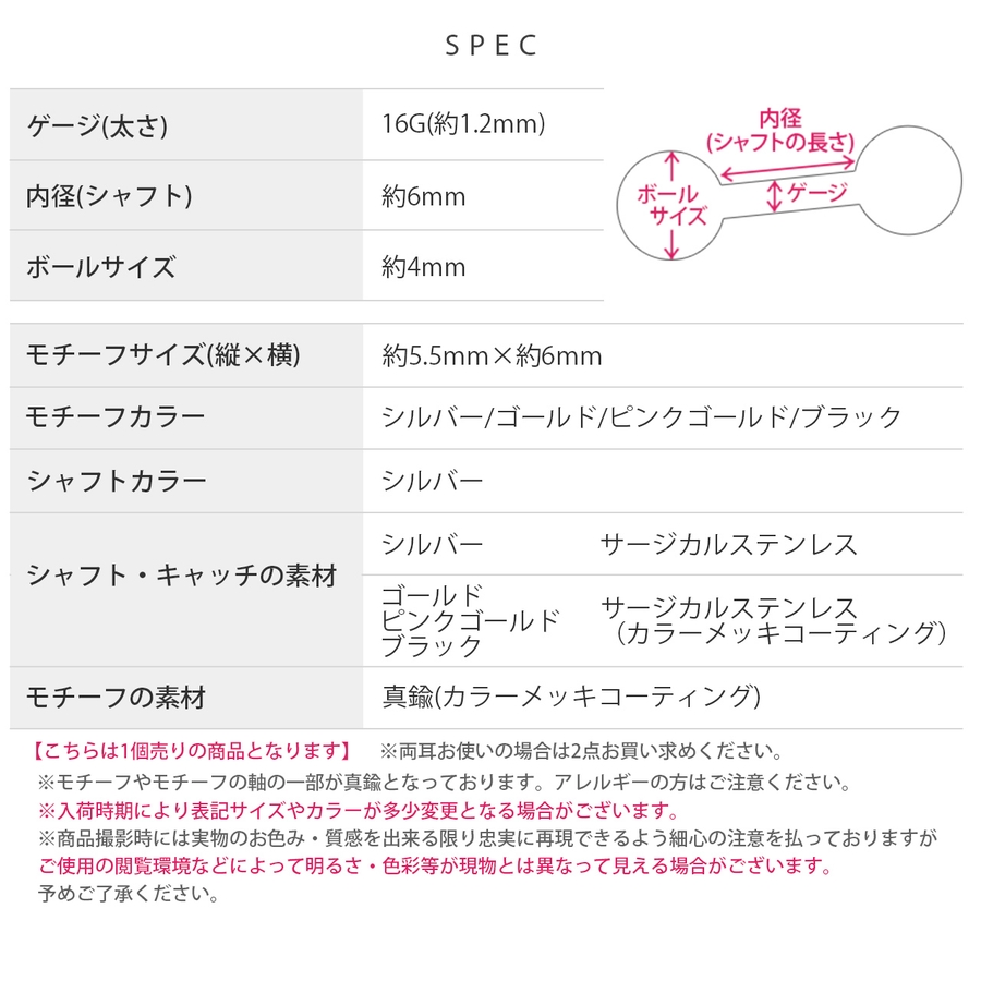 ゴールド ピンクゴールド ブラック:サージカルステンレス(カラーメッキコーティング)
