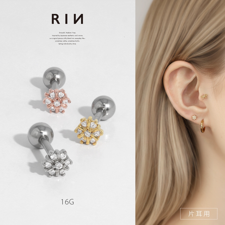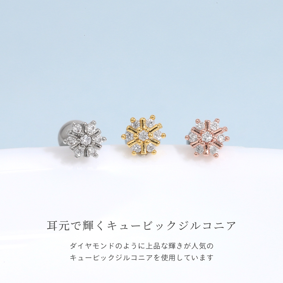 軟骨ピアス ジュエル雪の結晶雪小さめプチミニキュービックジルコニア ボディピアス