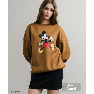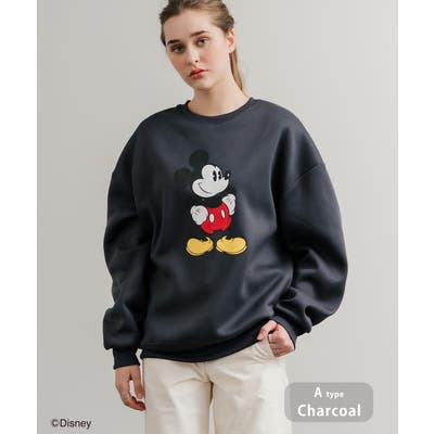 【B.チャコール】ミッキーマウス トレーナー 裏起毛