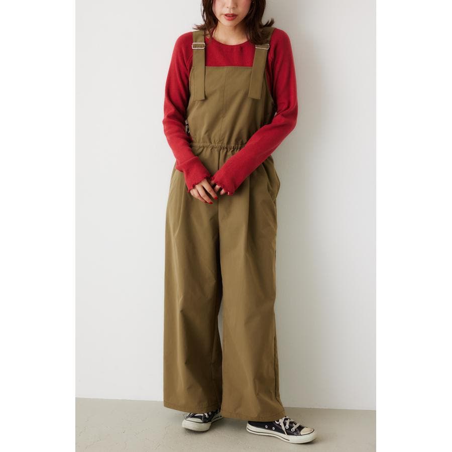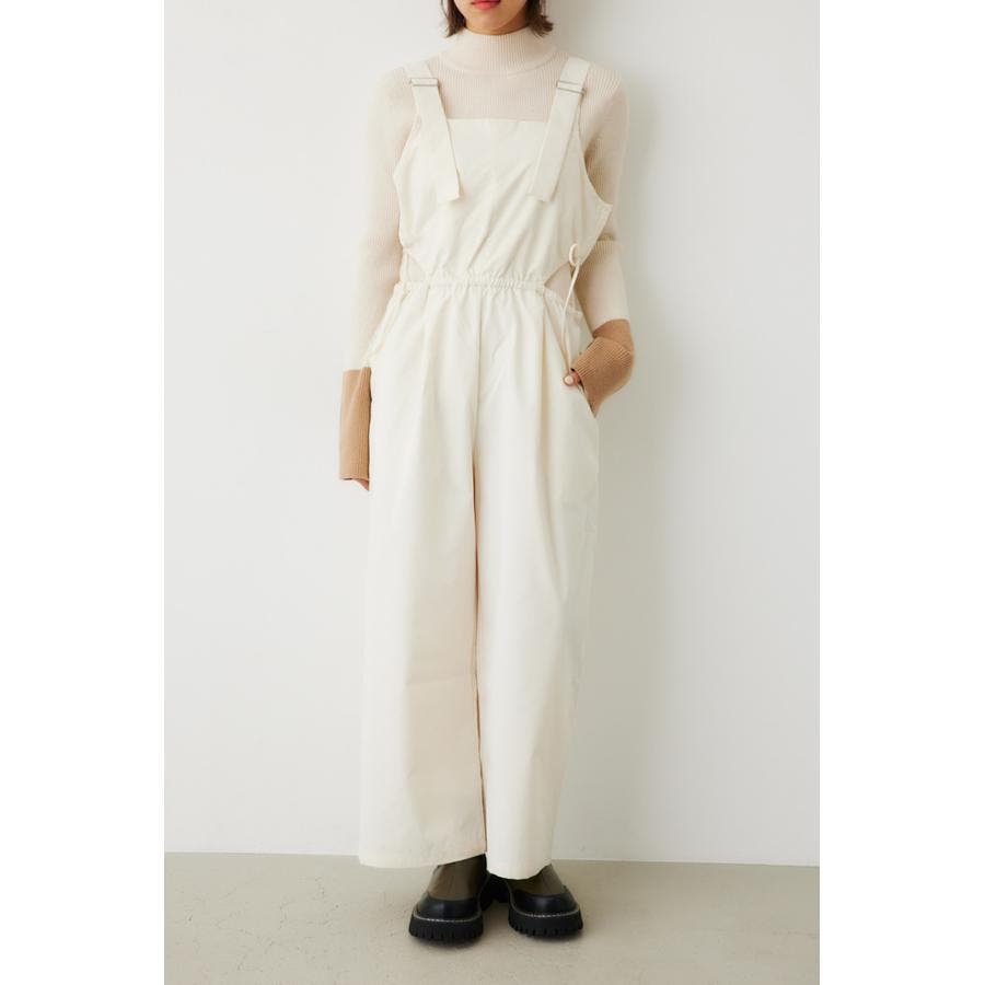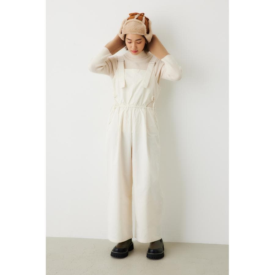 今季トレンドのカットアウトサロペット。ウエスト位置にあるカットアウトデザインがポイントです。肌見せに抵抗がある方は中にロンT等を合わせるのがおすすめ。