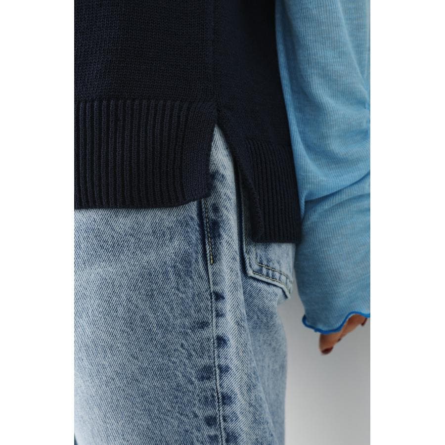 バスト部分のカギ針編みデザインが可愛いベスト。1枚でスタイリングのポイントになるトップスです。TシャツやロンTとの重ね着が春らしくオススメです。