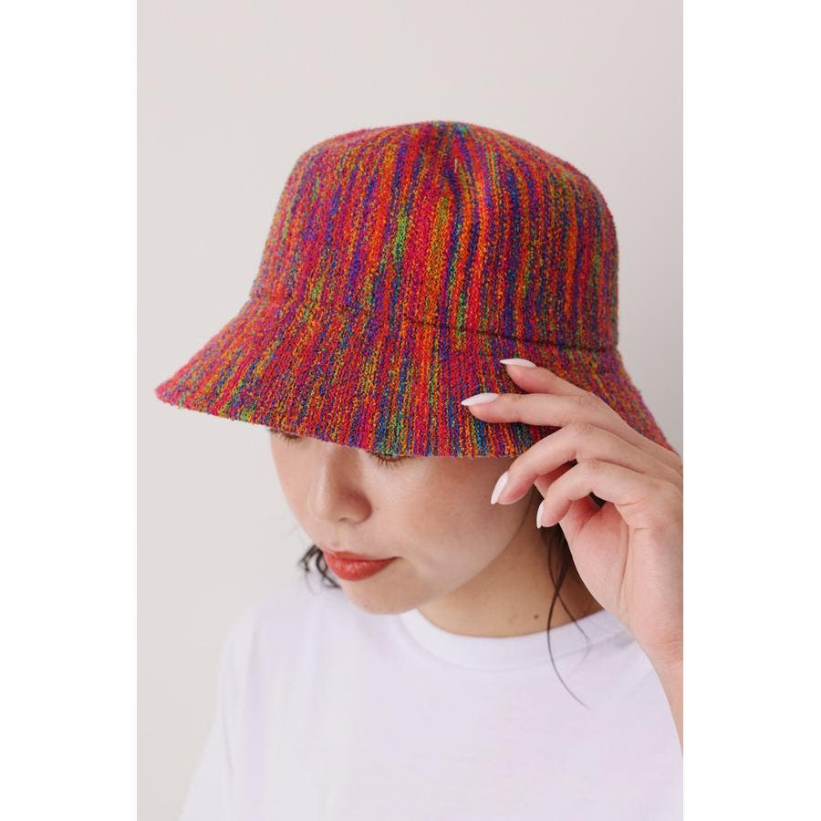 レトロな色合いのミックスバケットハット。スタイリングのポイントになり、日差しが強くなるこれからの季節のマストアイテムです。